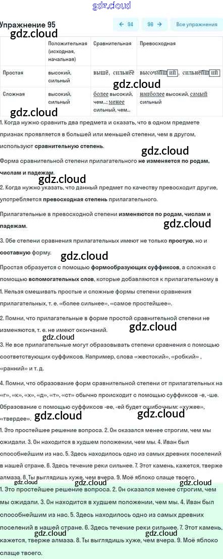 Ответ на задание 95 Учебник Русский язык за 5 (пятый) класс Шмелёв, Флоренская, Габович Алгоритм успеха 2022 Часть 1, 2