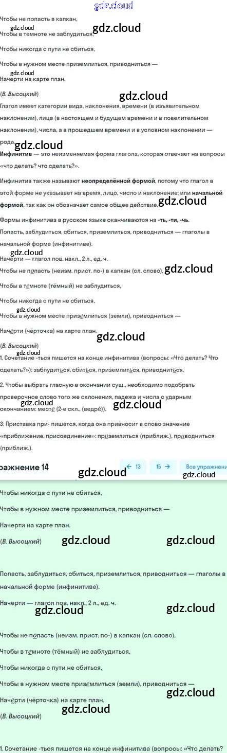 Ответ на задание 14 Учебник Русский язык за 5 (пятый) класс Шмелёв, Флоренская, Габович Алгоритм успеха 2022 Часть 1, 2