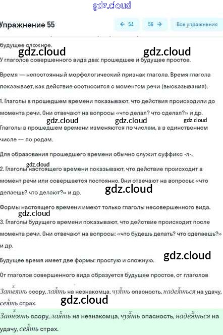 Ответ на задание 55 Учебник Русский язык за 5 (пятый) класс Шмелёв, Флоренская, Габович Алгоритм успеха 2022 Часть 1, 2