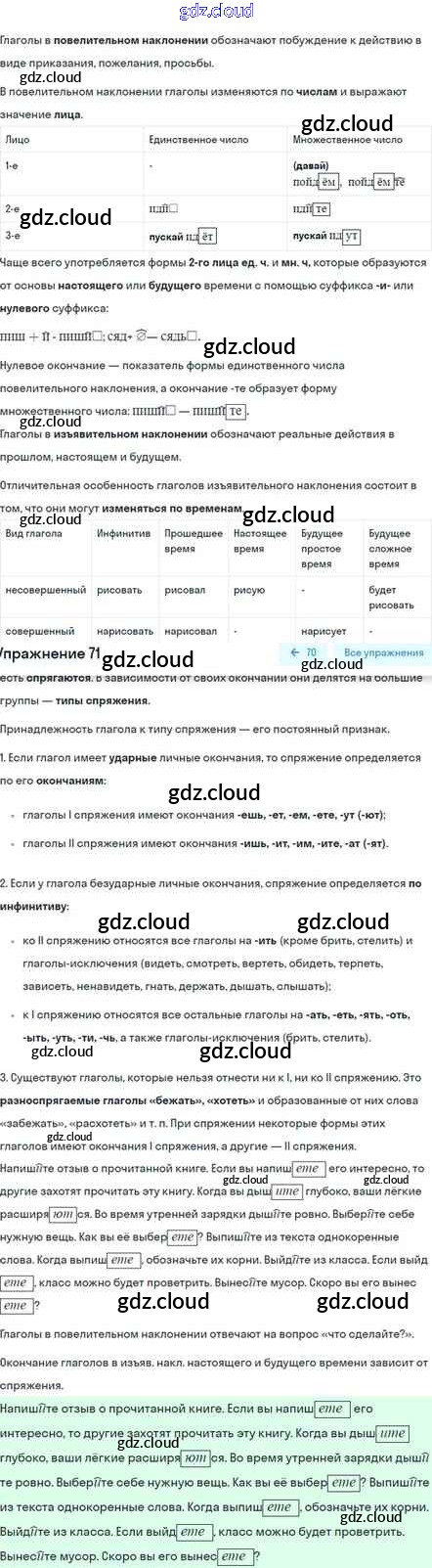 Ответ на задание 71 Учебник Русский язык за 5 (пятый) класс Шмелёв, Флоренская, Габович Алгоритм успеха 2022 Часть 1, 2