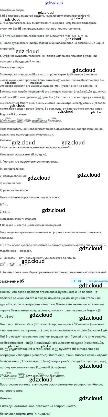 Ответ на задание 85 Учебник Русский язык за 5 (пятый) класс Шмелёв, Флоренская, Габович Алгоритм успеха 2022 Часть 1, 2