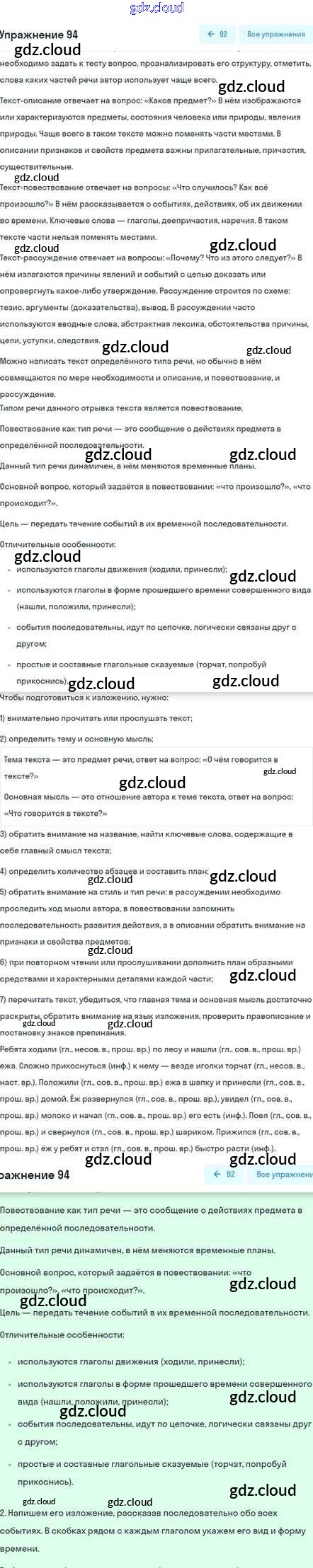 Ответ на задание 94 Учебник Русский язык за 5 (пятый) класс Шмелёв, Флоренская, Габович Алгоритм успеха 2022 Часть 1, 2