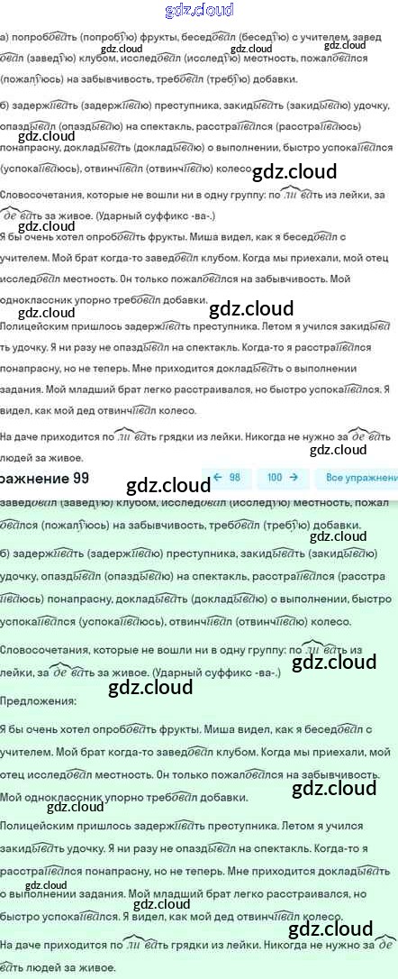 Ответ на задание 99 Учебник Русский язык за 5 (пятый) класс Шмелёв, Флоренская, Габович Алгоритм успеха 2022 Часть 1, 2