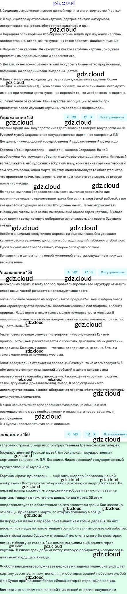 Ответ на задание 150 Учебник Русский язык за 5 (пятый) класс Шмелёв, Флоренская, Габович Алгоритм успеха 2022 Часть 1, 2