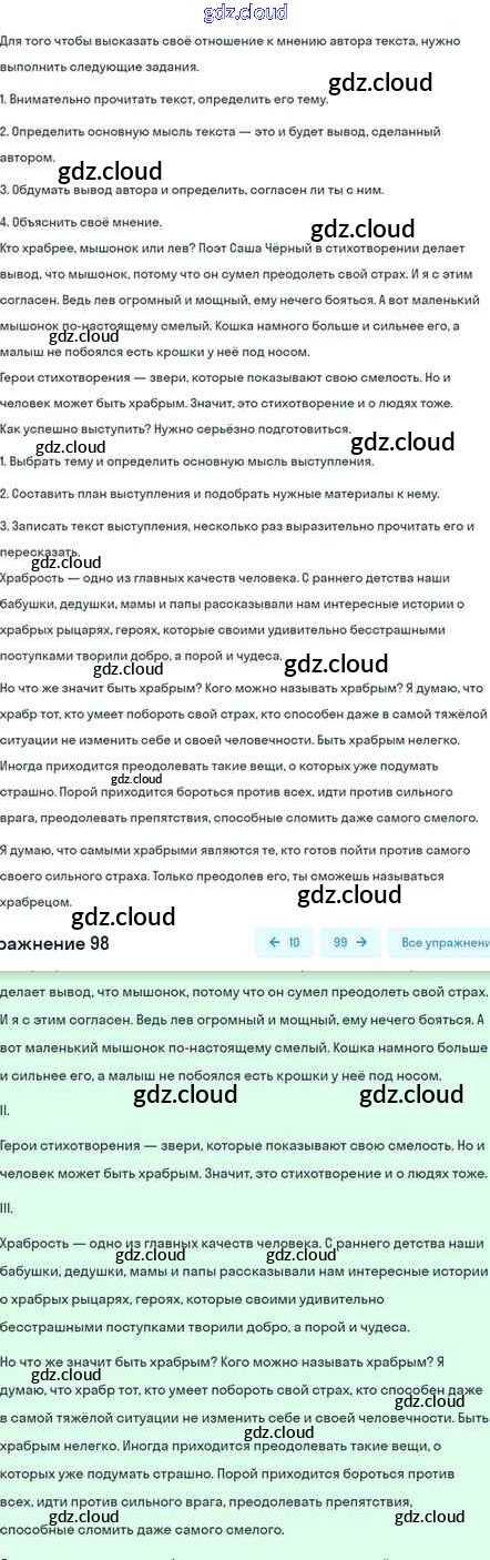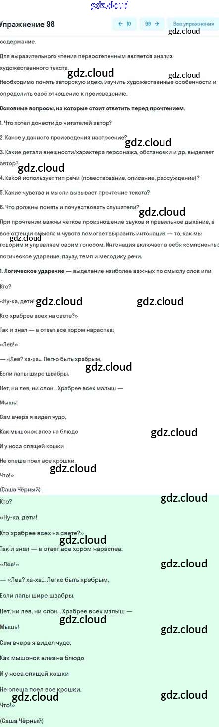 Ответ на задание 98 Учебник Русский язык за 5 (пятый) класс Шмелёв, Флоренская, Габович Алгоритм успеха 2022 Часть 1, 2