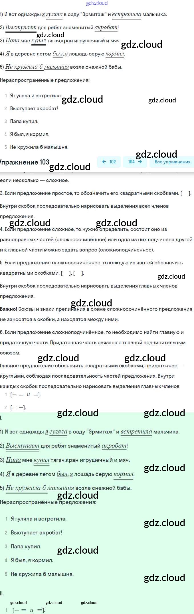 Ответ на задание 103 Рабочая тетрадь Русский язык за 5 (пятый) класс Янченко, Латфуллина, Михайлова 2019 Часть 1, 2