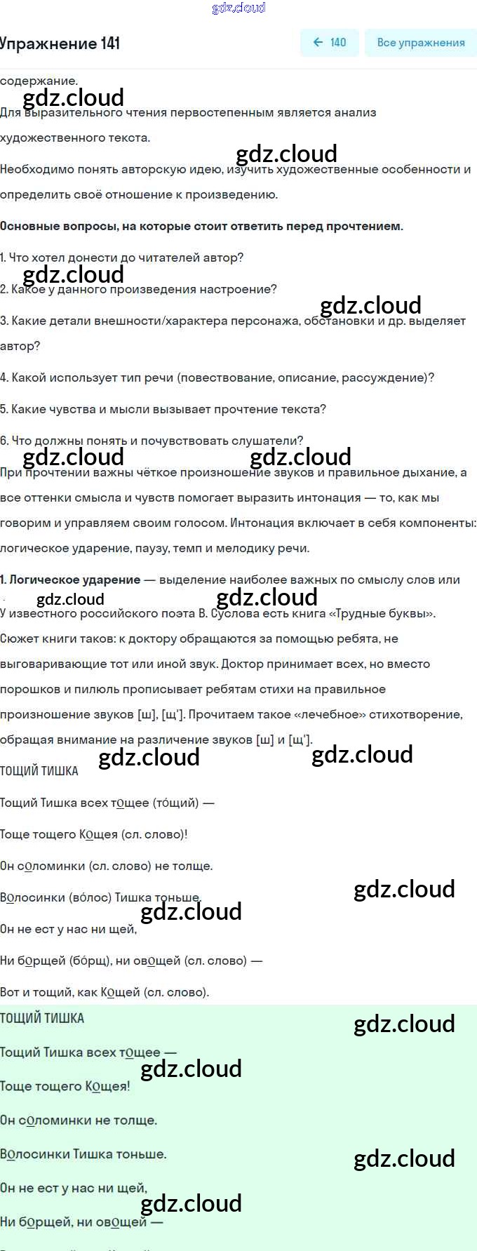 Ответ на задание 141 Рабочая тетрадь Русский язык за 5 (пятый) класс Янченко, Латфуллина, Михайлова 2019 Часть 1, 2