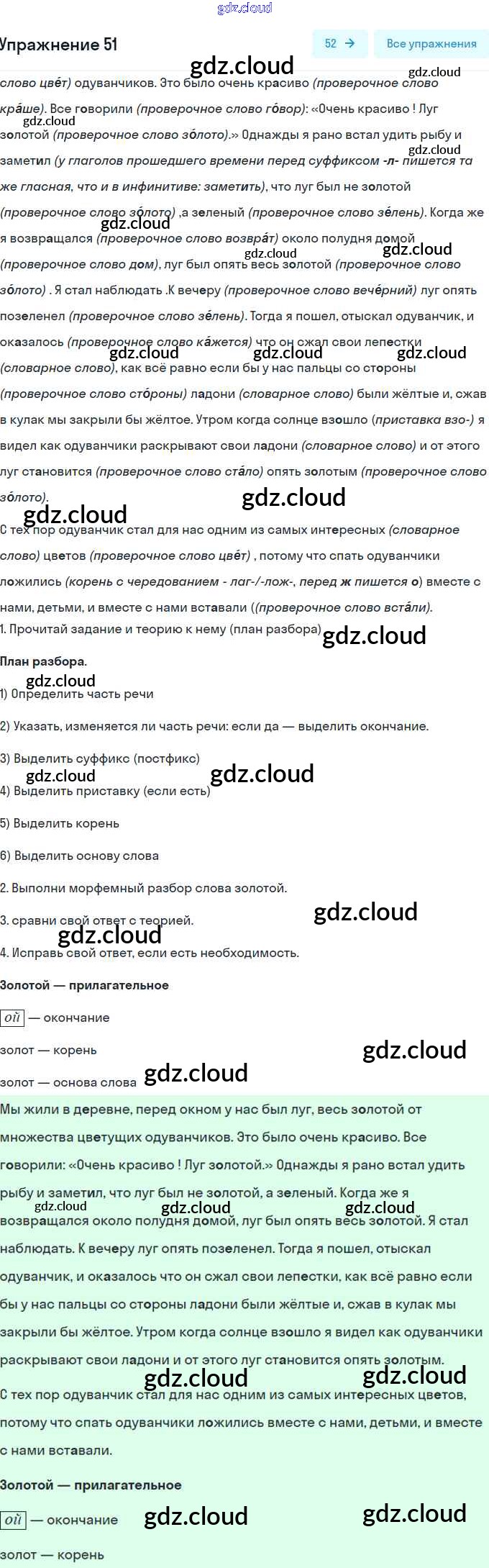 Ответ на задание 51 Рабочая тетрадь Русский язык за 5 (пятый) класс Янченко, Латфуллина, Михайлова 2019 Часть 1, 2