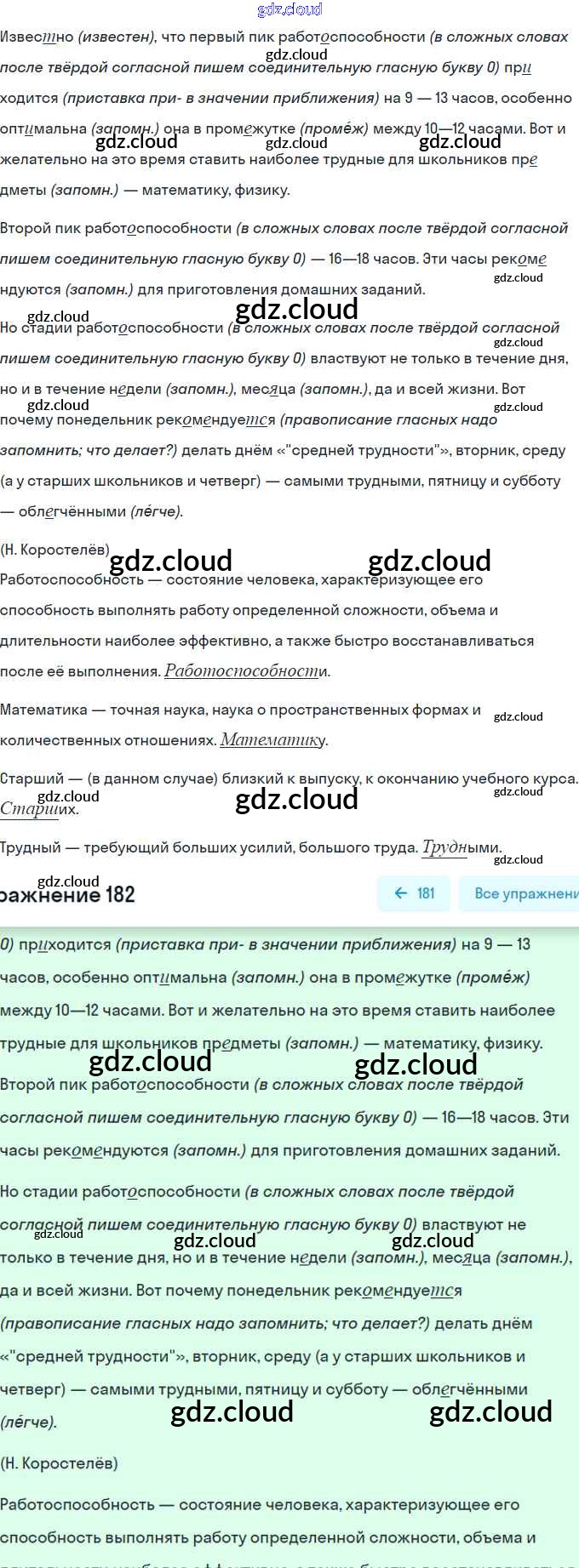 Ответ на задание 182 Рабочая тетрадь Русский язык за 5 (пятый) класс Янченко, Латфуллина, Михайлова 2019 Часть 1, 2