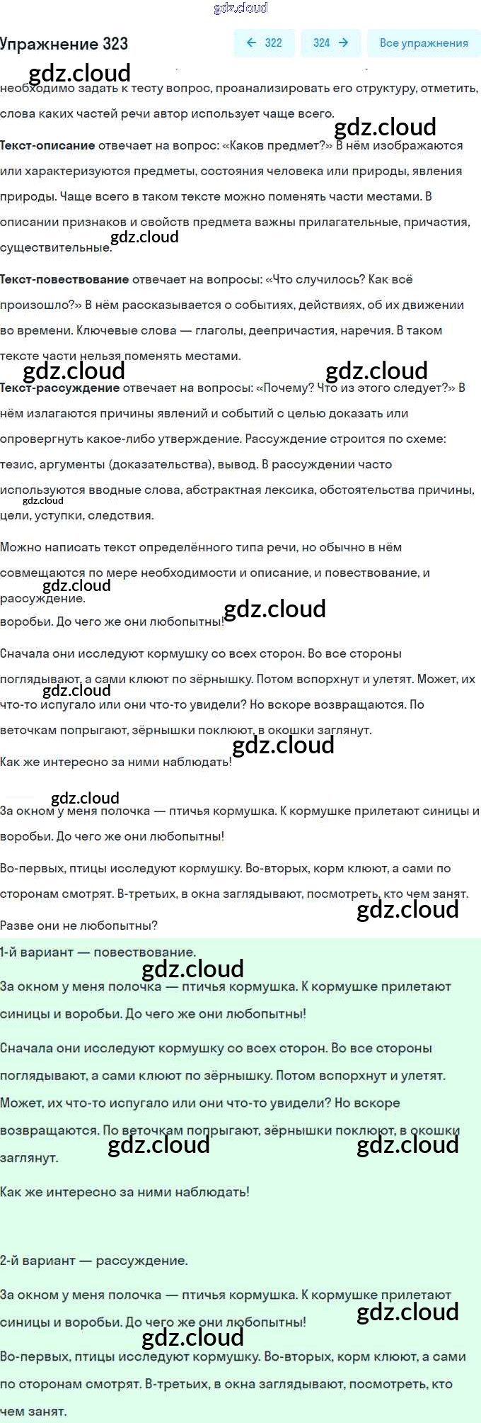 Ответ на задание 323 Рабочая тетрадь Русский язык за 5 (пятый) класс Янченко, Латфуллина, Михайлова 2019 Часть 1, 2