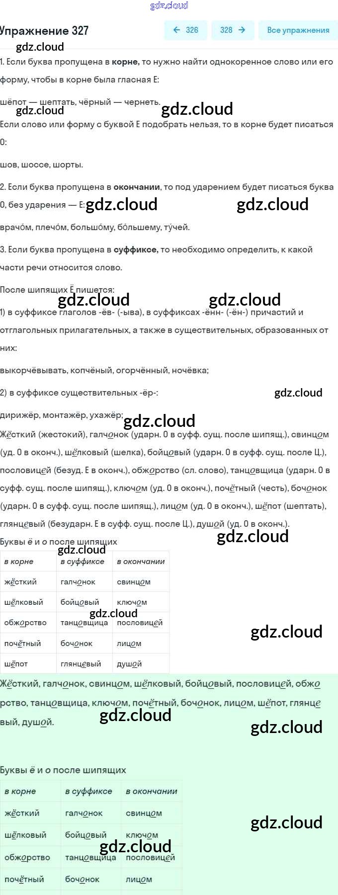 Ответ на задание 327 Рабочая тетрадь Русский язык за 5 (пятый) класс Янченко, Латфуллина, Михайлова 2019 Часть 1, 2