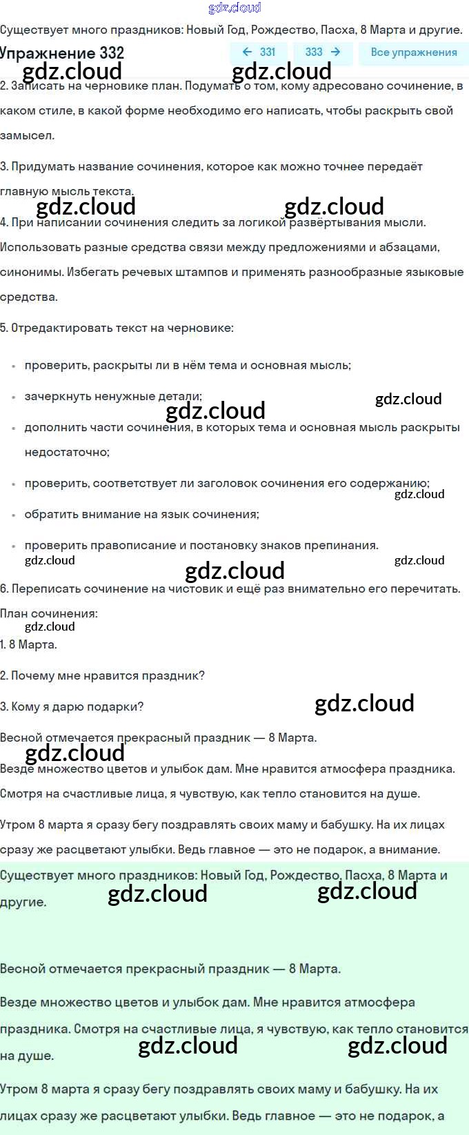 Ответ на задание 332 Рабочая тетрадь Русский язык за 5 (пятый) класс Янченко, Латфуллина, Михайлова 2019 Часть 1, 2