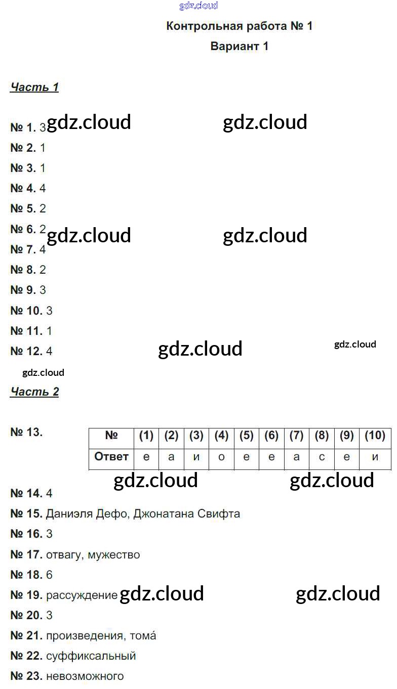 Ответ на задание вариант-1 Тематический контроль Русский язык за 6 (шестой) класс Александров, Александрова 2017