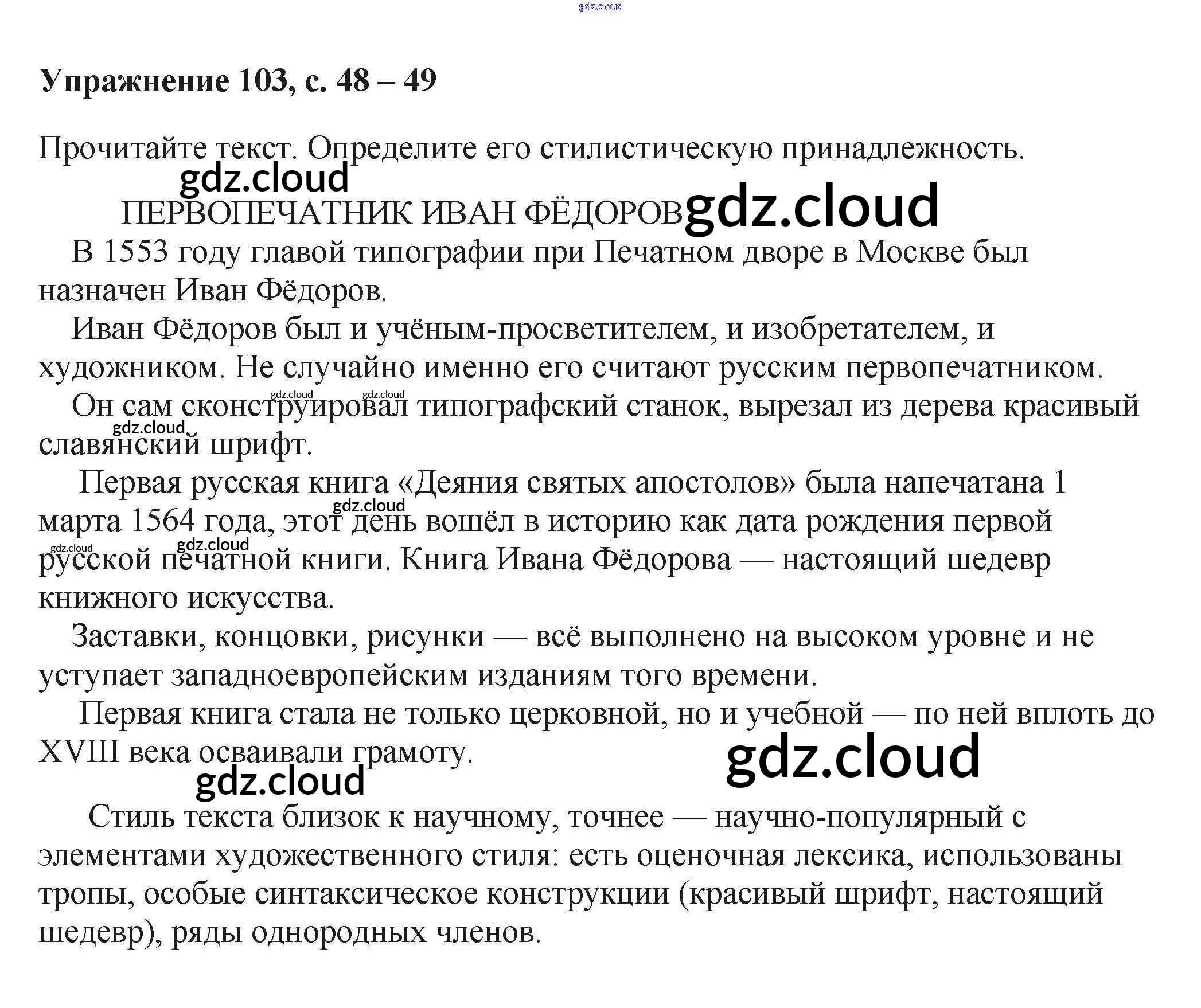 Ответ на задание 103 Учебник Русский язык за 6 (шестой) класс Баранов, Ладыженская, Тростенцова, Григорян, Кулибаба 2015, 2022 Часть 1, 2