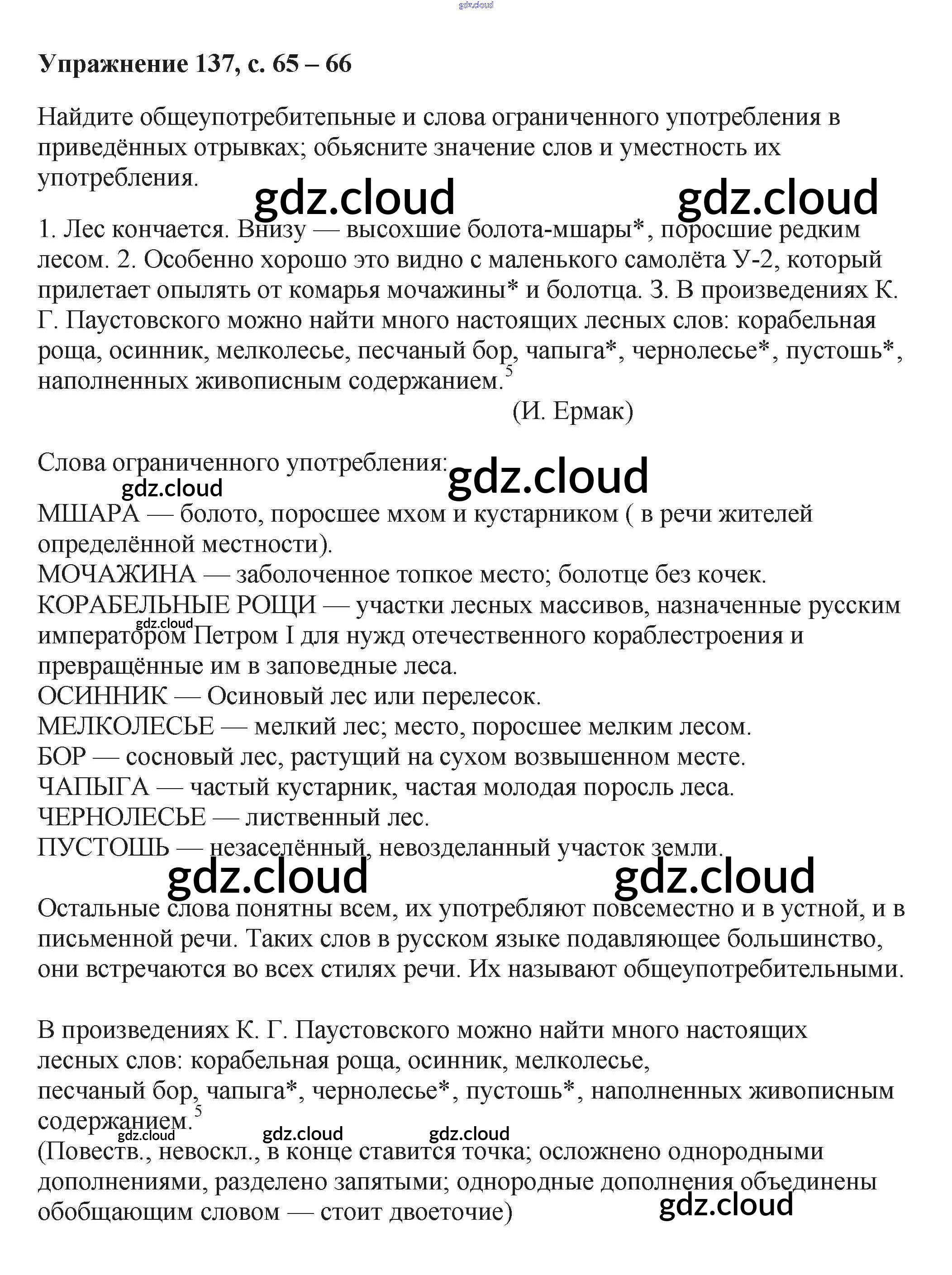 Ответ на задание 137 Учебник Русский язык за 6 (шестой) класс Баранов, Ладыженская, Тростенцова, Григорян, Кулибаба 2015, 2022 Часть 1, 2