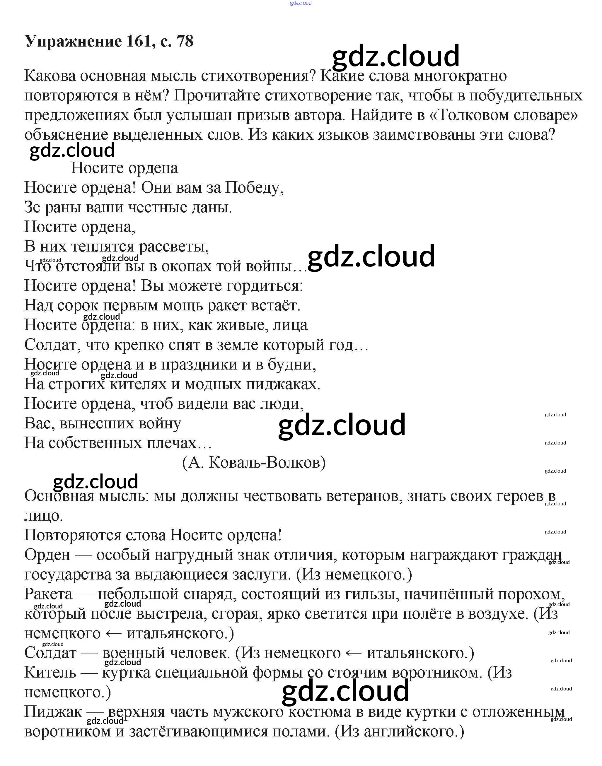 Ответ на задание 161 Учебник Русский язык за 6 (шестой) класс Баранов, Ладыженская, Тростенцова, Григорян, Кулибаба 2015, 2022 Часть 1, 2