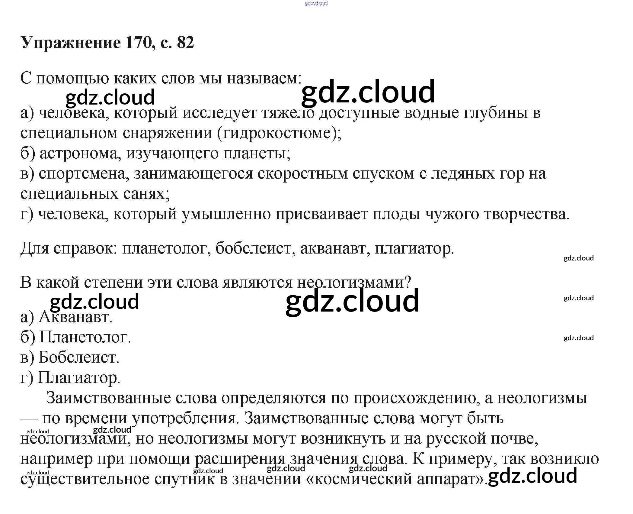 Ответ на задание 170 Учебник Русский язык за 6 (шестой) класс Баранов, Ладыженская, Тростенцова, Григорян, Кулибаба 2015, 2022 Часть 1, 2