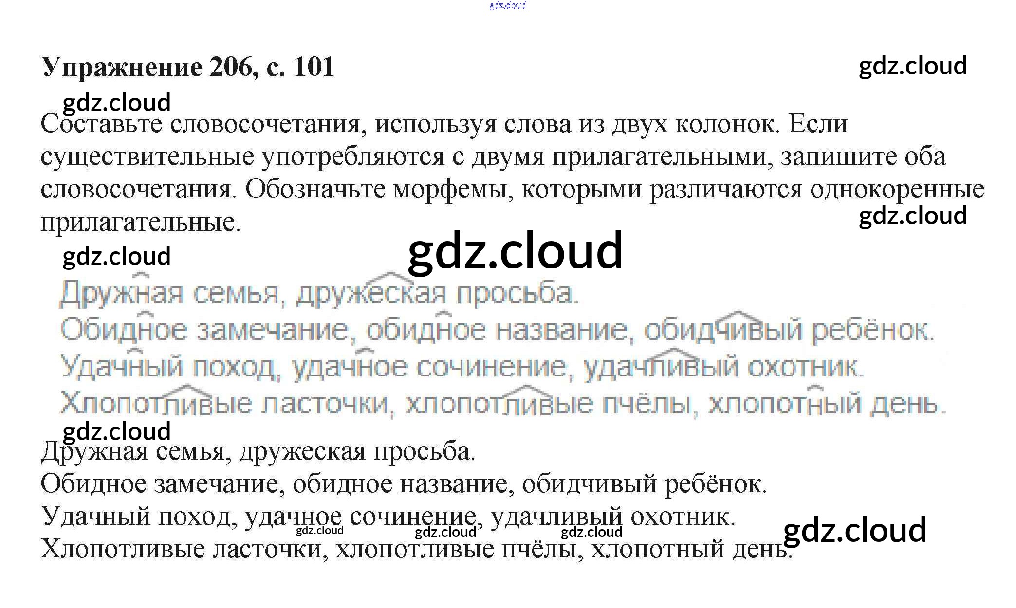 Ответ на задание 206 Учебник Русский язык за 6 (шестой) класс Баранов, Ладыженская, Тростенцова, Григорян, Кулибаба 2015, 2022 Часть 1, 2