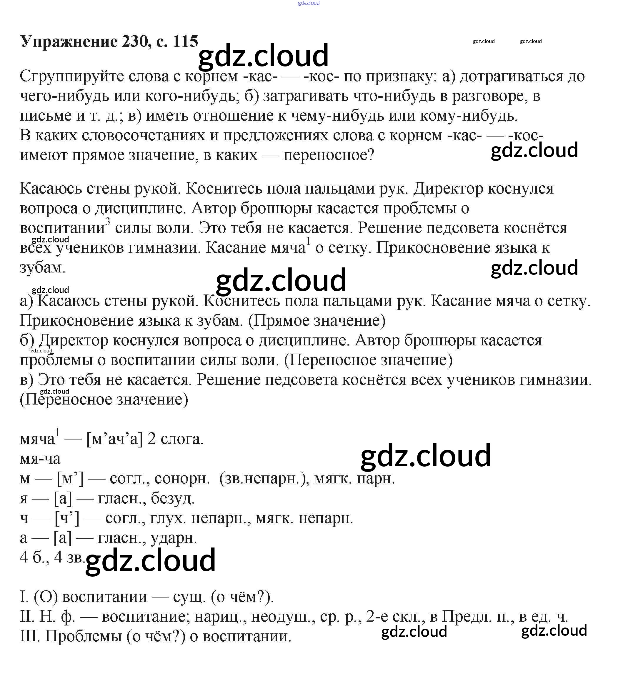 Ответ на задание 230 Учебник Русский язык за 6 (шестой) класс Баранов, Ладыженская, Тростенцова, Григорян, Кулибаба 2015, 2022 Часть 1, 2