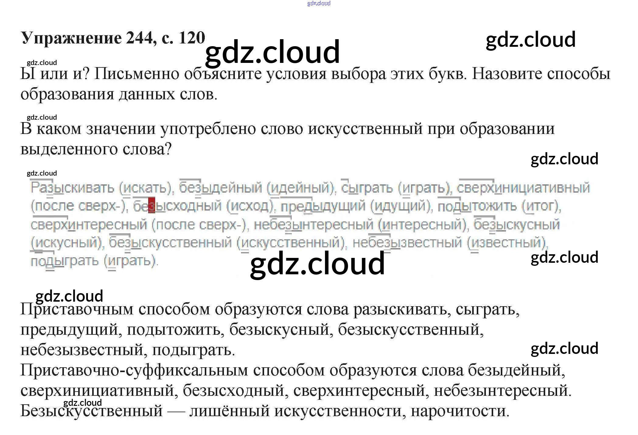 Ответ на задание 244 Учебник Русский язык за 6 (шестой) класс Баранов, Ладыженская, Тростенцова, Григорян, Кулибаба 2015, 2022 Часть 1, 2