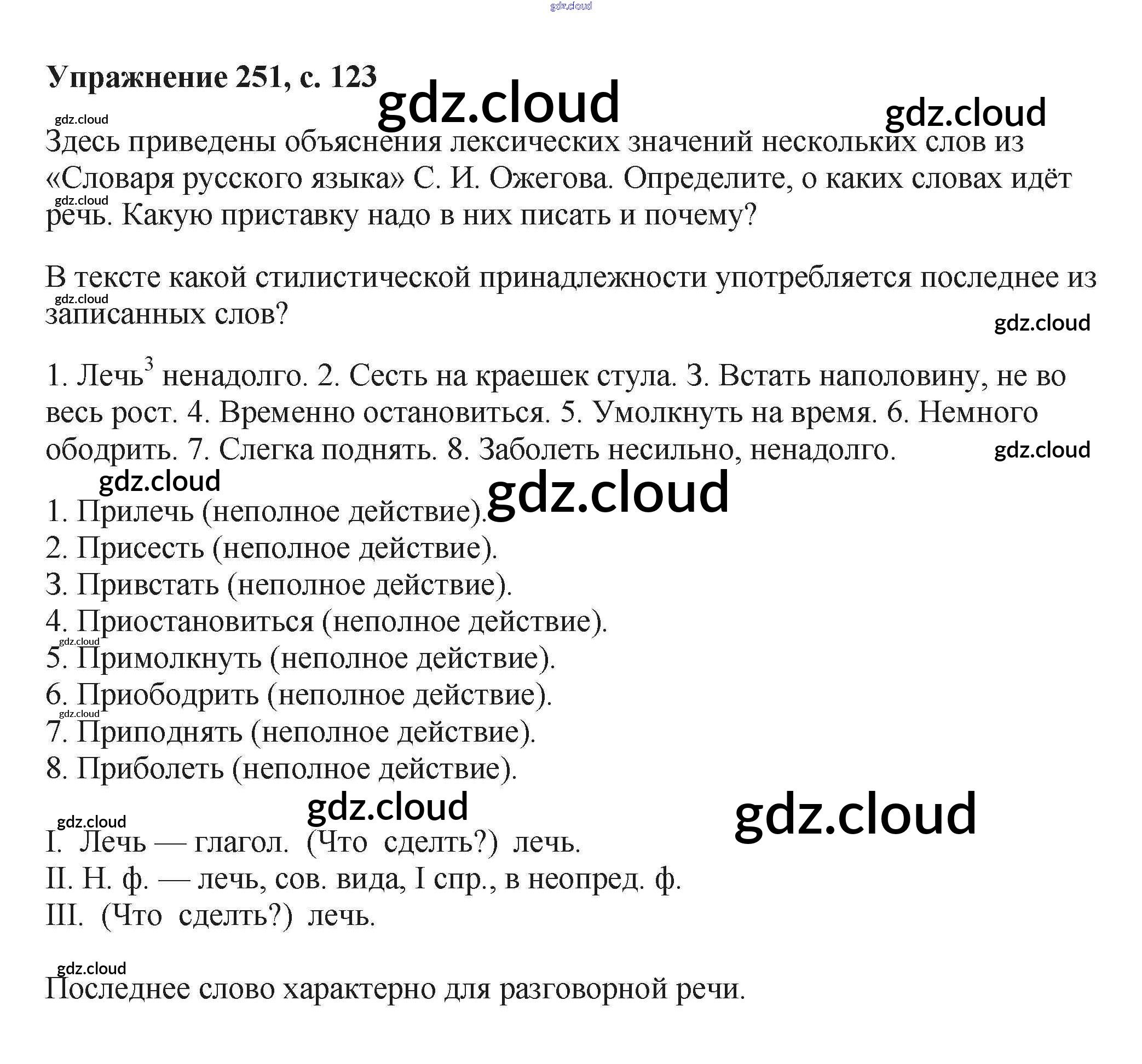 Ответ на задание 251 Учебник Русский язык за 6 (шестой) класс Баранов, Ладыженская, Тростенцова, Григорян, Кулибаба 2015, 2022 Часть 1, 2