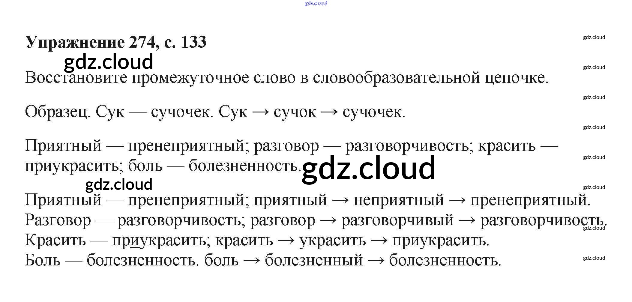 Ответ на задание 274 Учебник Русский язык за 6 (шестой) класс Баранов, Ладыженская, Тростенцова, Григорян, Кулибаба 2015, 2022 Часть 1, 2