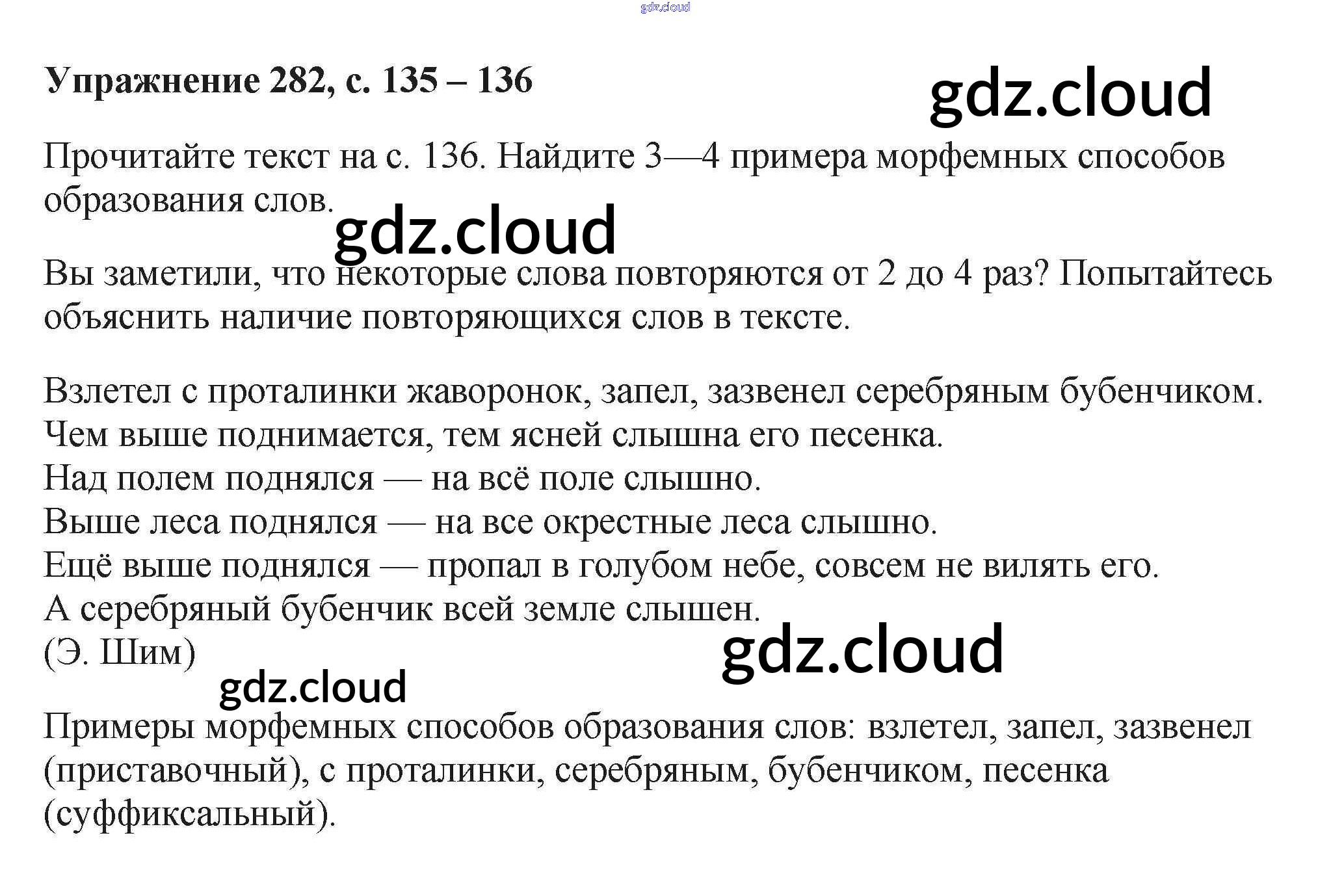 Ответ на задание 282 Учебник Русский язык за 6 (шестой) класс Баранов, Ладыженская, Тростенцова, Григорян, Кулибаба 2015, 2022 Часть 1, 2