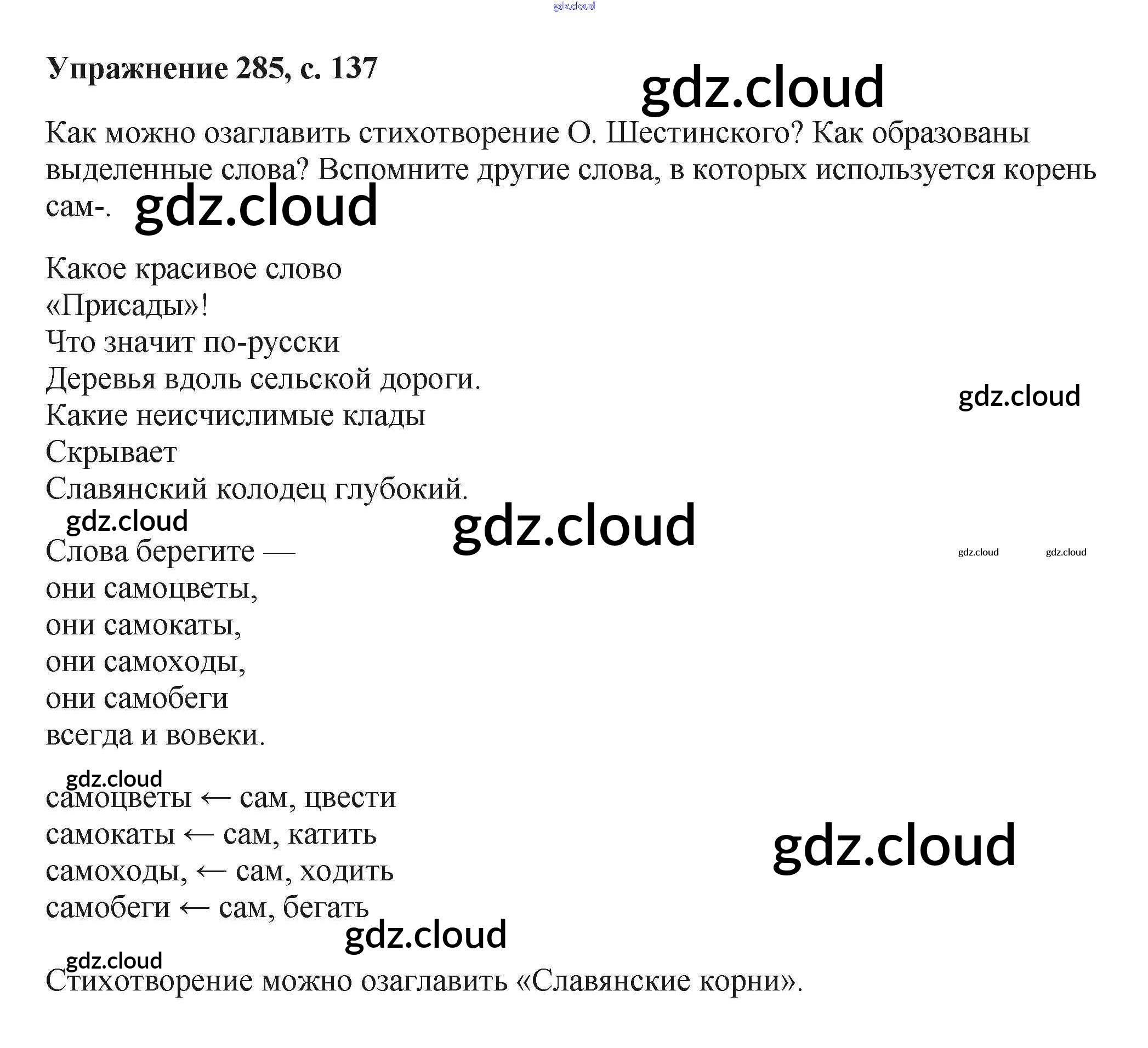 Ответ на задание 285 Учебник Русский язык за 6 (шестой) класс Баранов, Ладыженская, Тростенцова, Григорян, Кулибаба 2015, 2022 Часть 1, 2