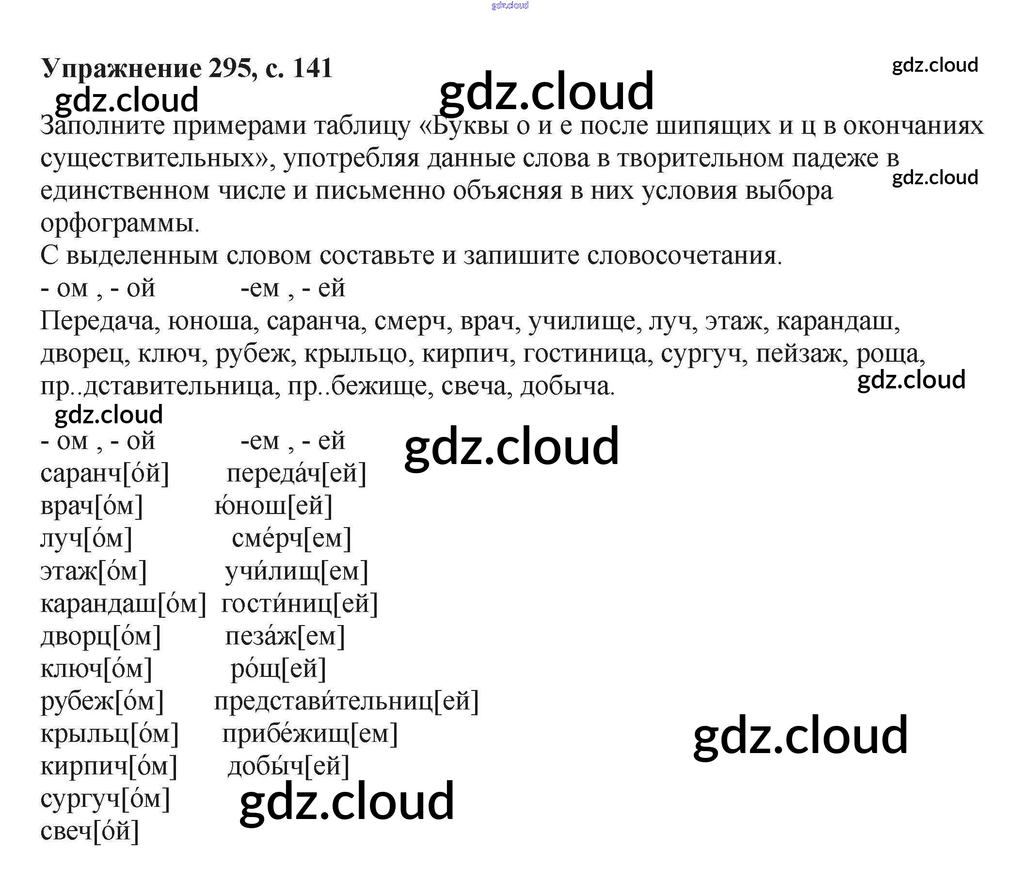 Ответ на задание 295 Учебник Русский язык за 6 (шестой) класс Баранов, Ладыженская, Тростенцова, Григорян, Кулибаба 2015, 2022 Часть 1, 2