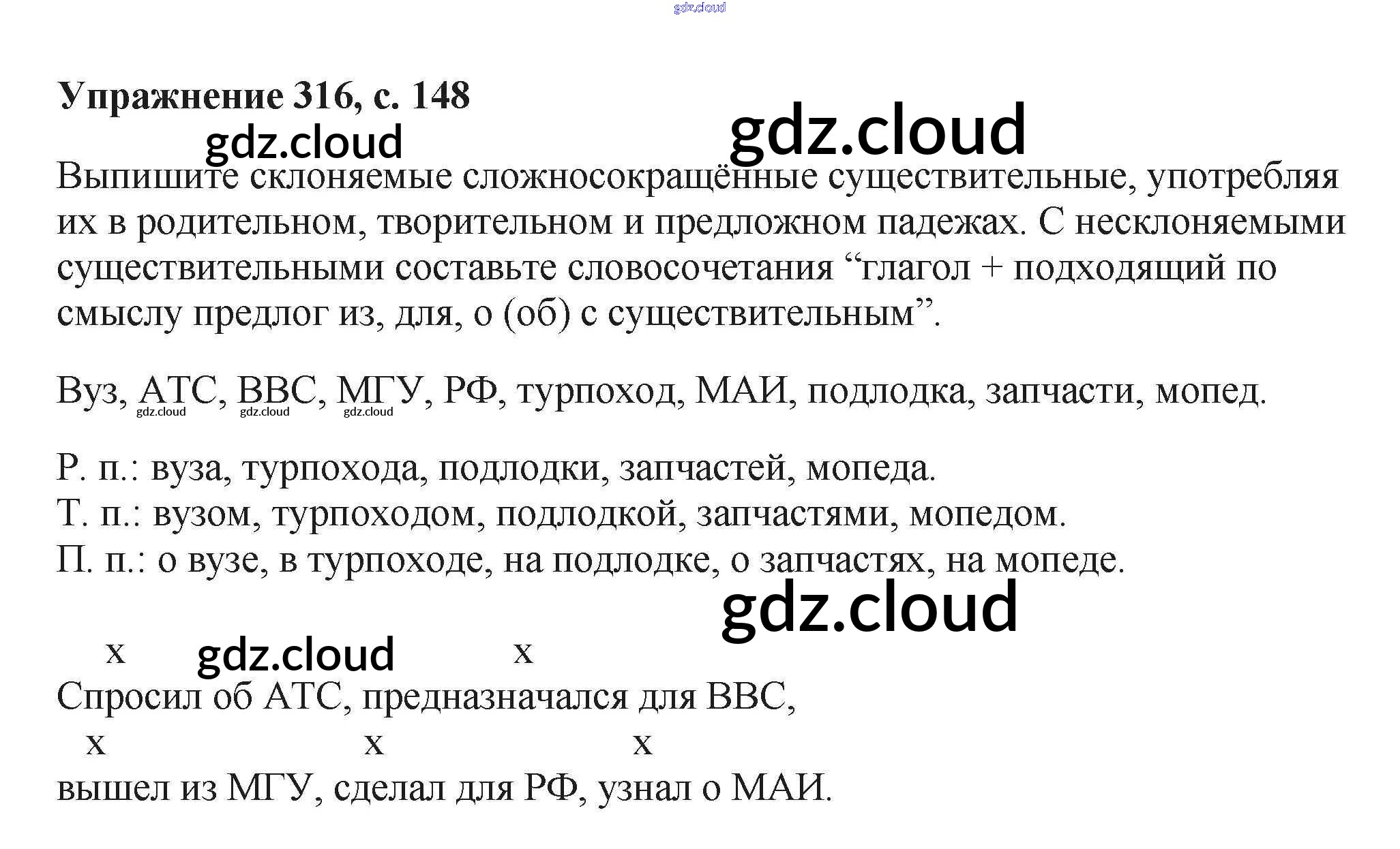 Ответ на задание 316 Учебник Русский язык за 6 (шестой) класс Баранов, Ладыженская, Тростенцова, Григорян, Кулибаба 2015, 2022 Часть 1, 2