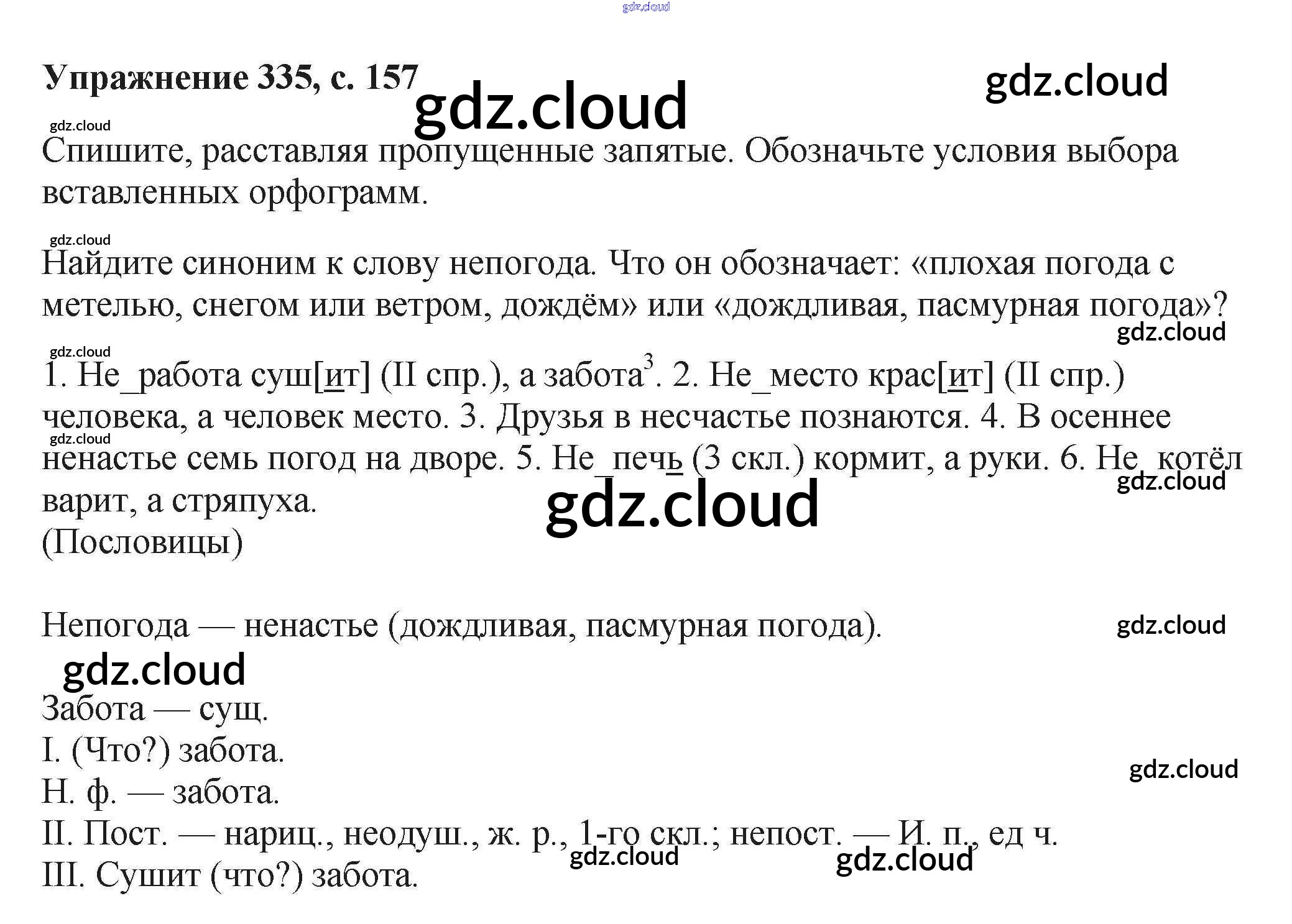 Ответ на задание 335 Учебник Русский язык за 6 (шестой) класс Баранов, Ладыженская, Тростенцова, Григорян, Кулибаба 2015, 2022 Часть 1, 2