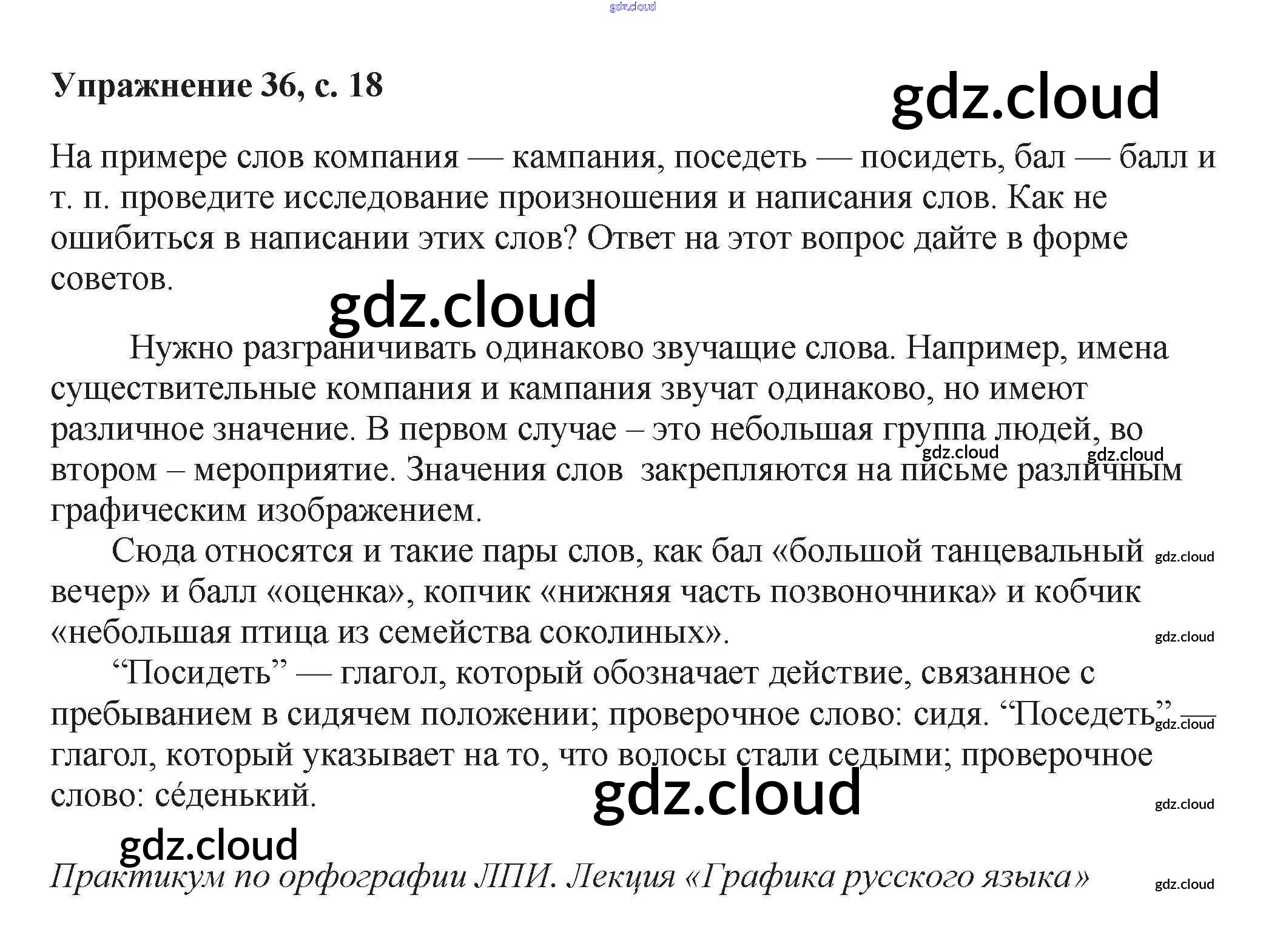 Ответ на задание 36 Учебник Русский язык за 6 (шестой) класс Баранов, Ладыженская, Тростенцова, Григорян, Кулибаба 2015, 2022 Часть 1, 2