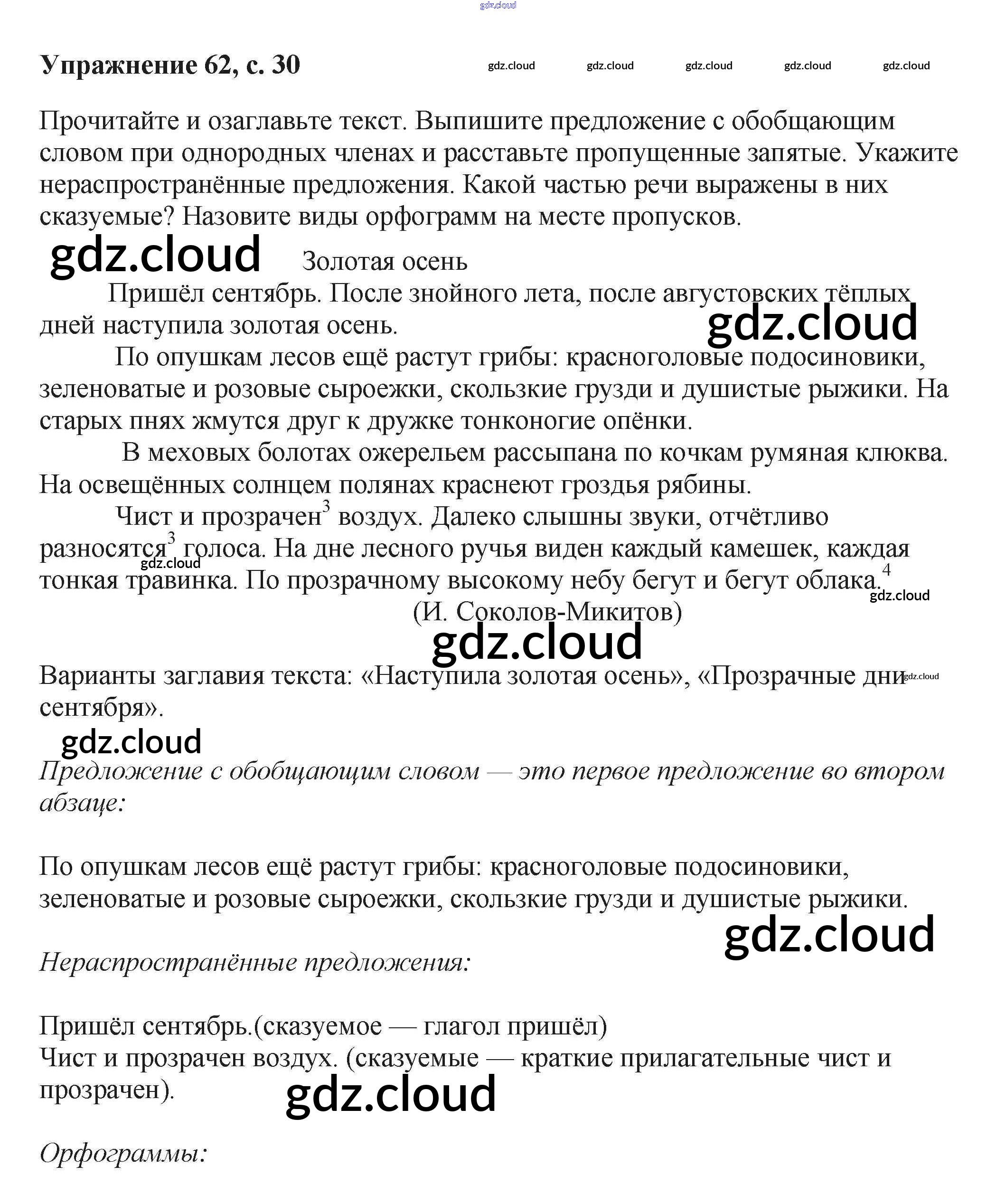 Ответ на задание 62 Учебник Русский язык за 6 (шестой) класс Баранов, Ладыженская, Тростенцова, Григорян, Кулибаба 2015, 2022 Часть 1, 2