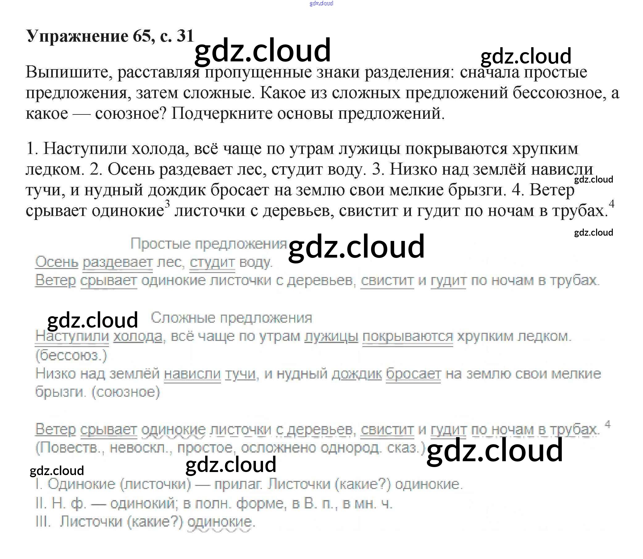 Ответ на задание 65 Учебник Русский язык за 6 (шестой) класс Баранов, Ладыженская, Тростенцова, Григорян, Кулибаба 2015, 2022 Часть 1, 2