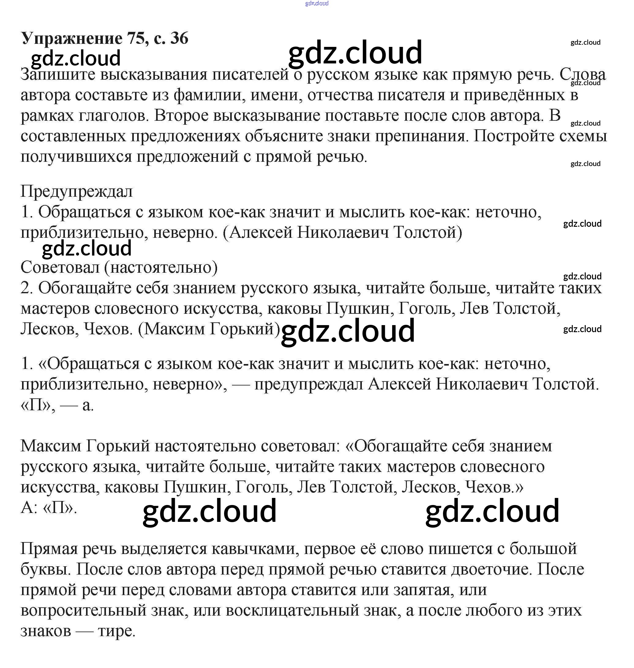 Ответ на задание 75 Учебник Русский язык за 6 (шестой) класс Баранов, Ладыженская, Тростенцова, Григорян, Кулибаба 2015, 2022 Часть 1, 2