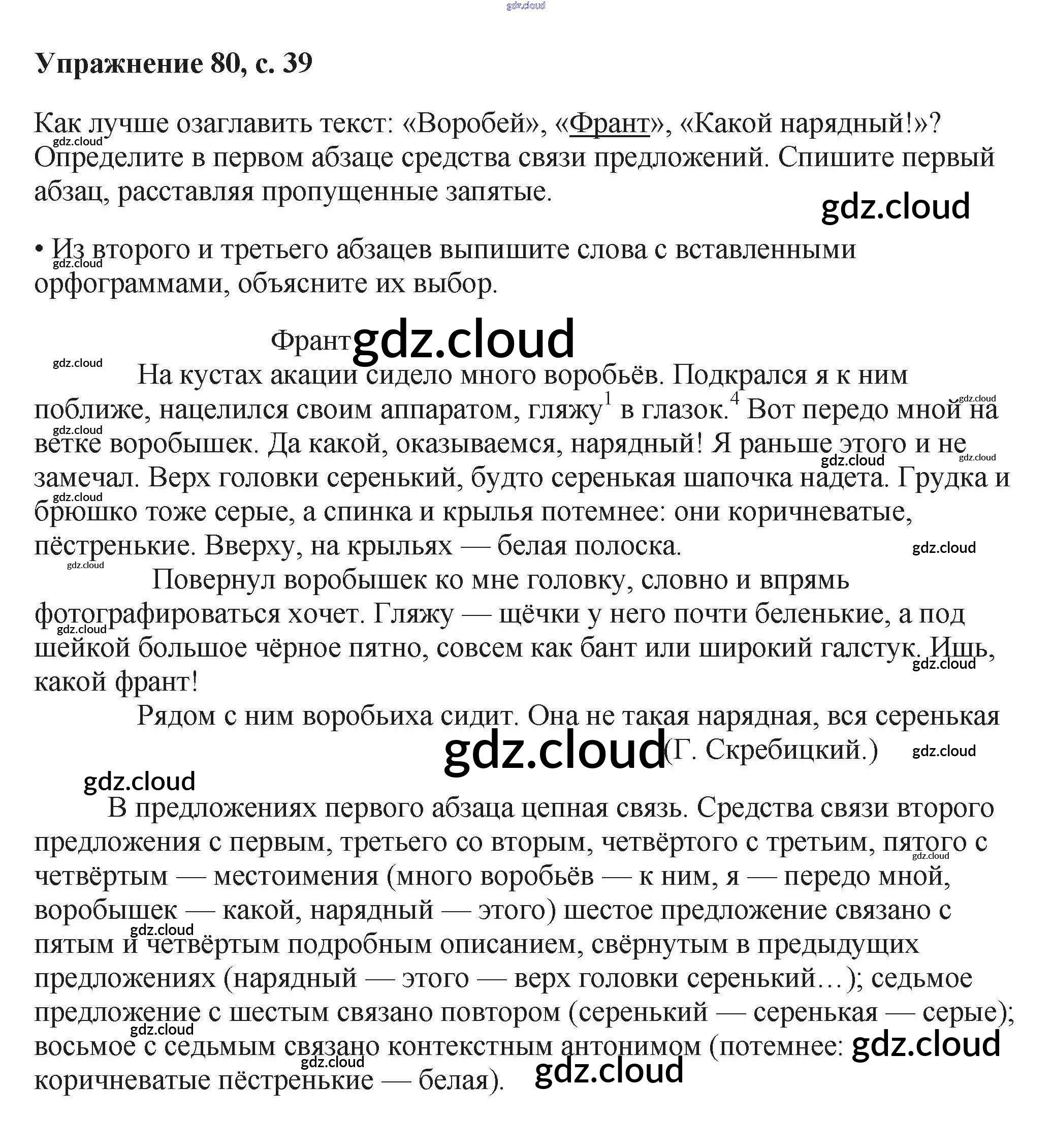 Ответ на задание 80 Учебник Русский язык за 6 (шестой) класс Баранов, Ладыженская, Тростенцова, Григорян, Кулибаба 2015, 2022 Часть 1, 2