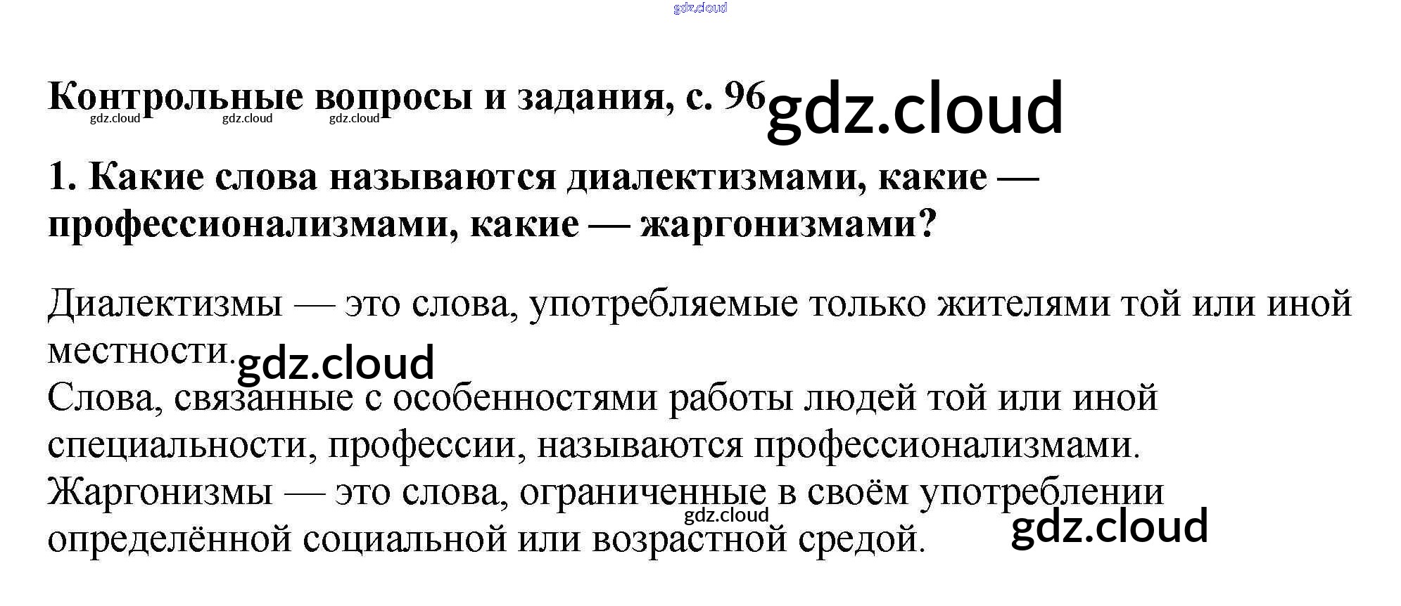 Страница 96 Контрольные вопросы и задания по Русскому языку 6 класс Учебник Баранов Часть 1, 2 Просвещение, Просвещение