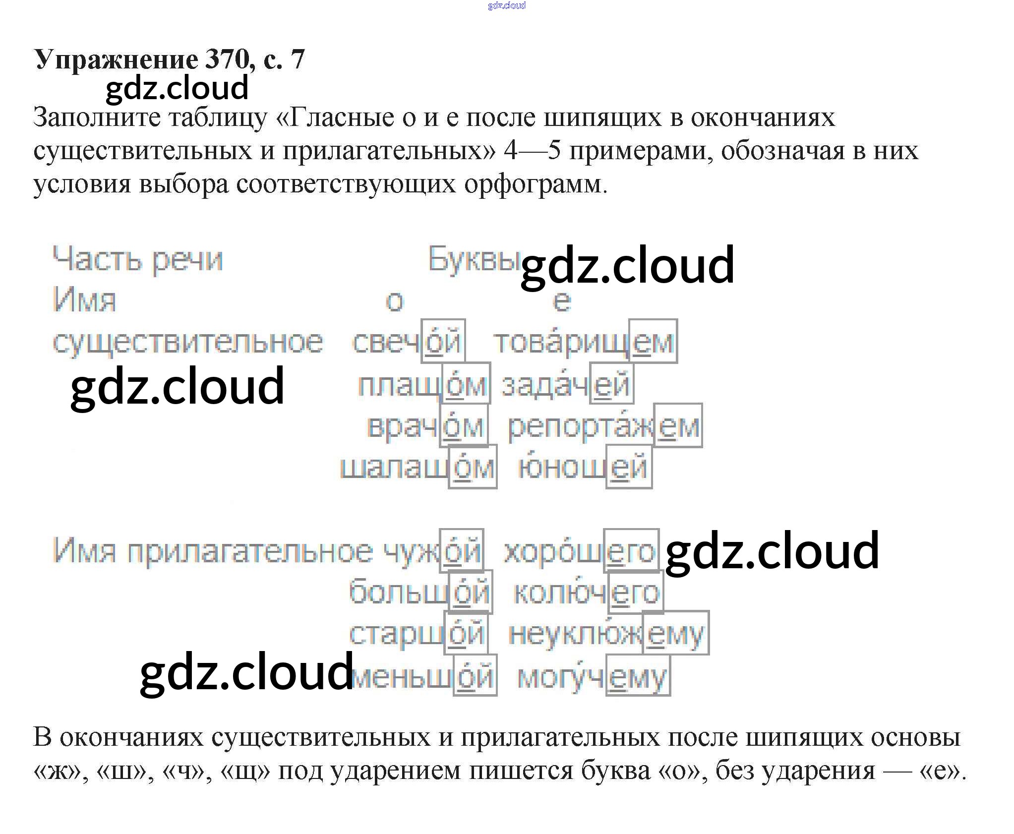 Ответ на задание 370 Учебник Русский язык за 6 (шестой) класс Баранов, Ладыженская, Тростенцова, Григорян, Кулибаба 2015, 2022 Часть 1, 2
