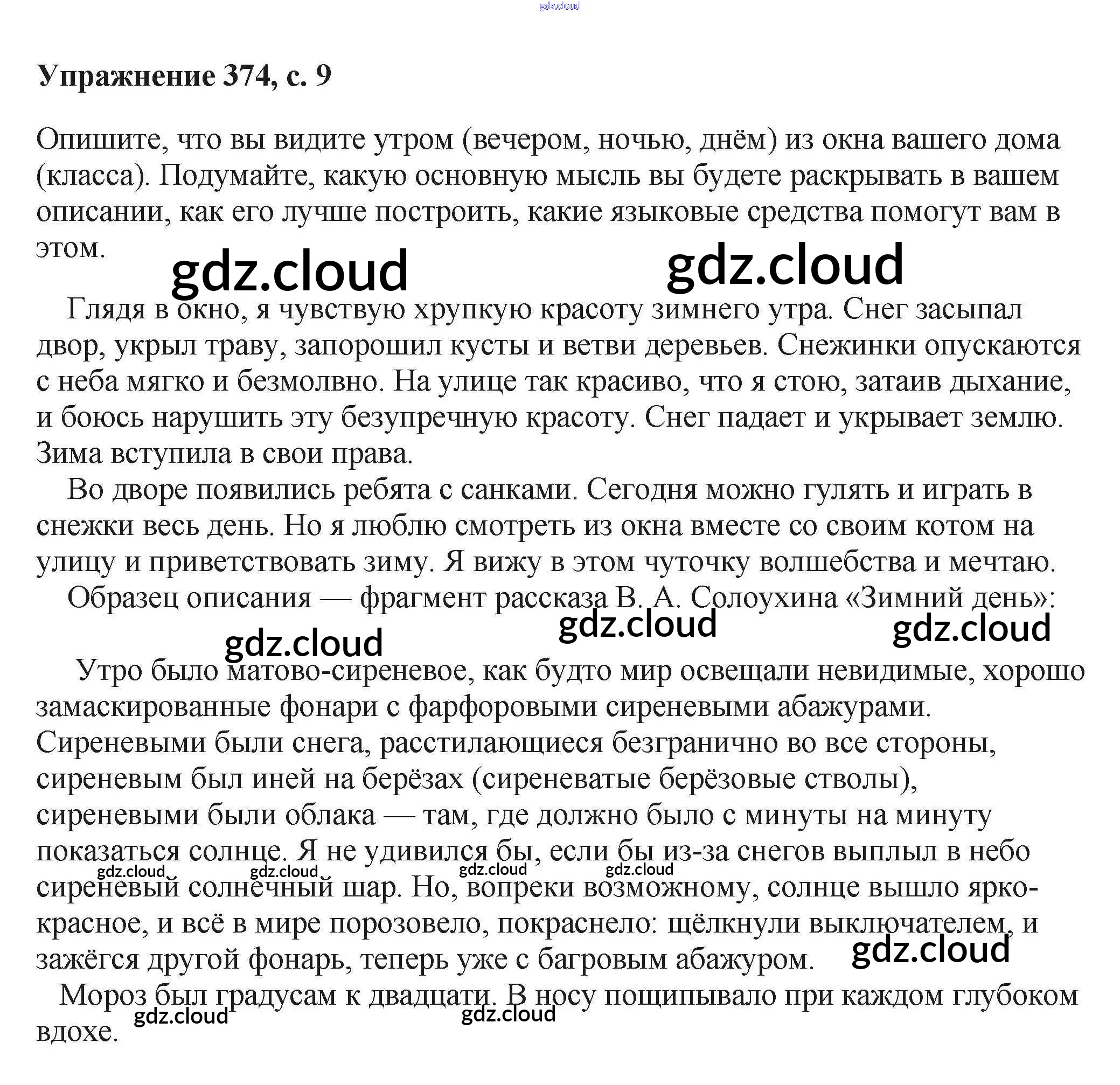 Ответ на задание 374 Учебник Русский язык за 6 (шестой) класс Баранов, Ладыженская, Тростенцова, Григорян, Кулибаба 2015, 2022 Часть 1, 2