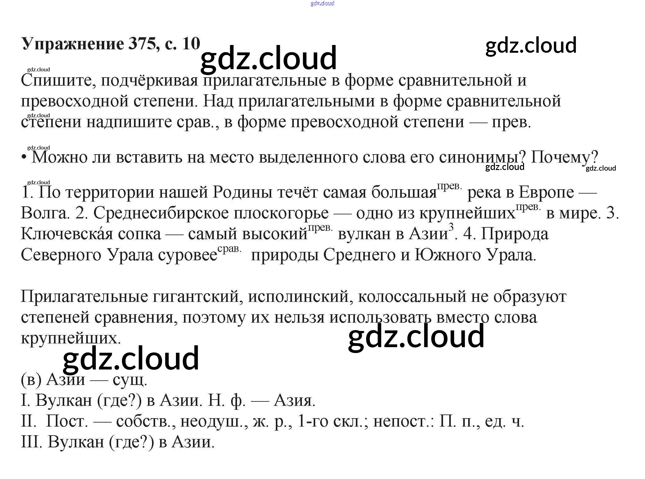 Ответ на задание 375 Учебник Русский язык за 6 (шестой) класс Баранов, Ладыженская, Тростенцова, Григорян, Кулибаба 2015, 2022 Часть 1, 2