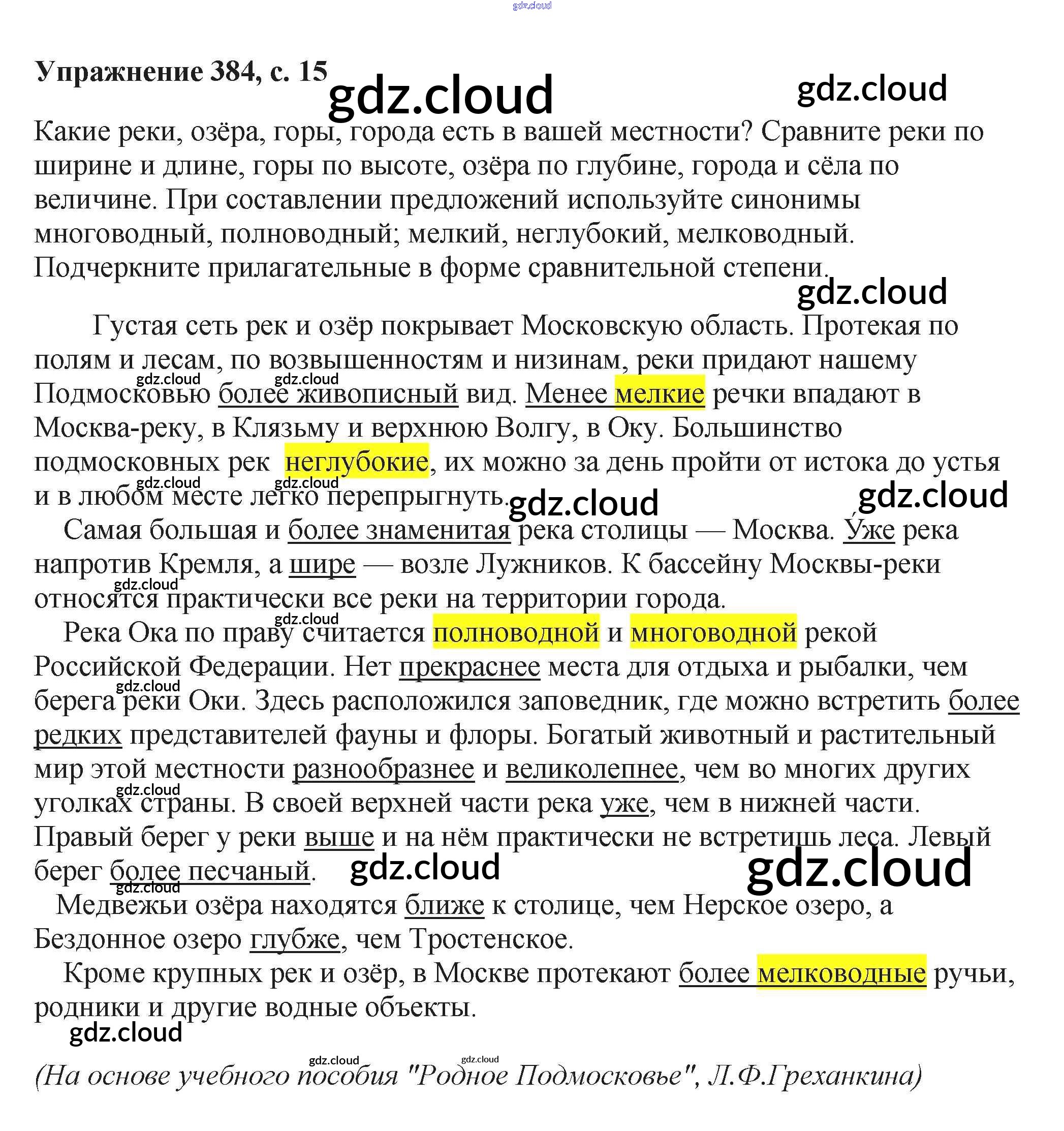 Ответ на задание 384 Учебник Русский язык за 6 (шестой) класс Баранов, Ладыженская, Тростенцова, Григорян, Кулибаба 2015, 2022 Часть 1, 2