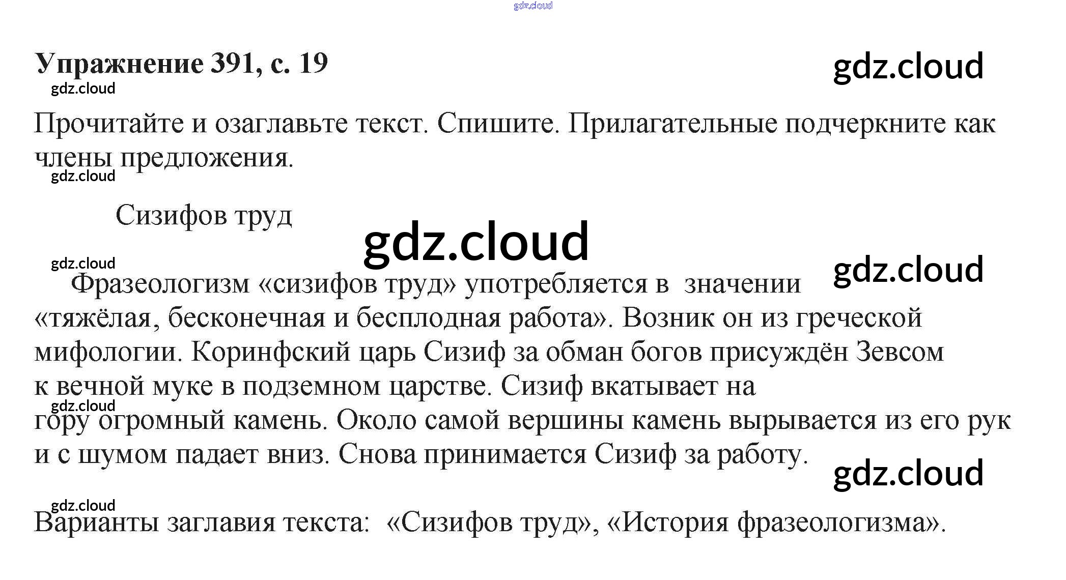 Ответ на задание 391 Учебник Русский язык за 6 (шестой) класс Баранов, Ладыженская, Тростенцова, Григорян, Кулибаба 2015, 2022 Часть 1, 2