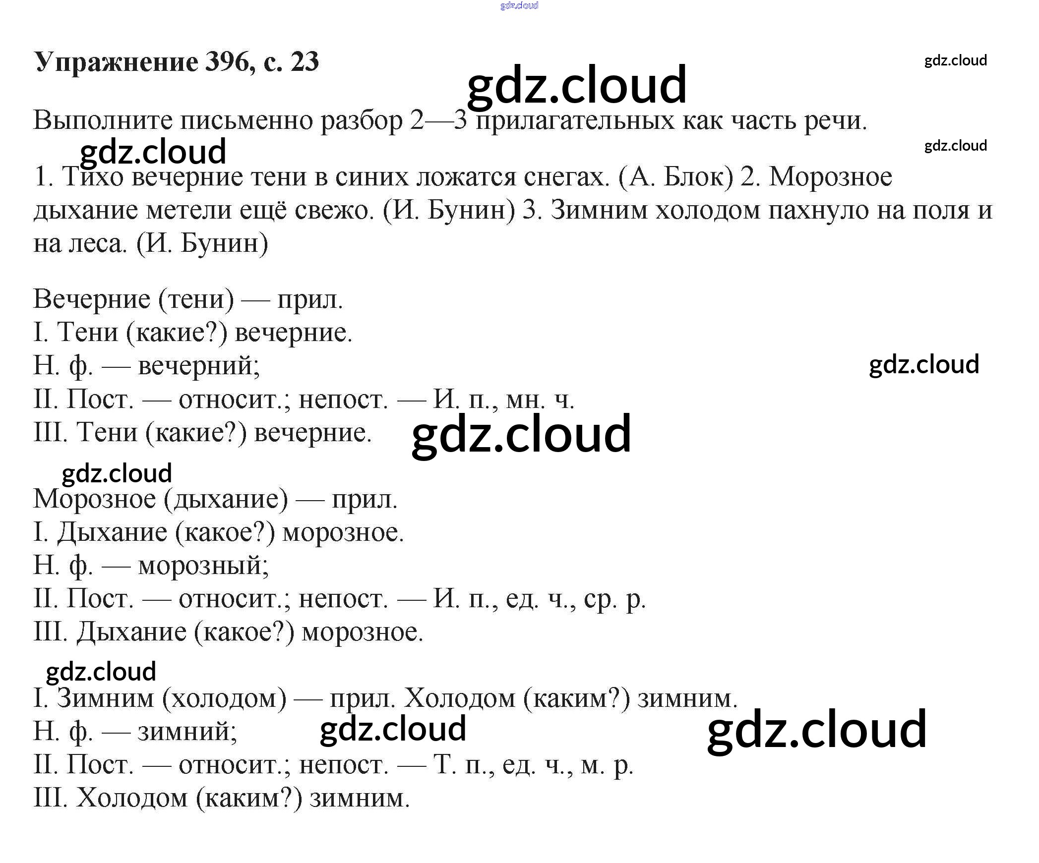 Ответ на задание 396 Учебник Русский язык за 6 (шестой) класс Баранов, Ладыженская, Тростенцова, Григорян, Кулибаба 2015, 2022 Часть 1, 2