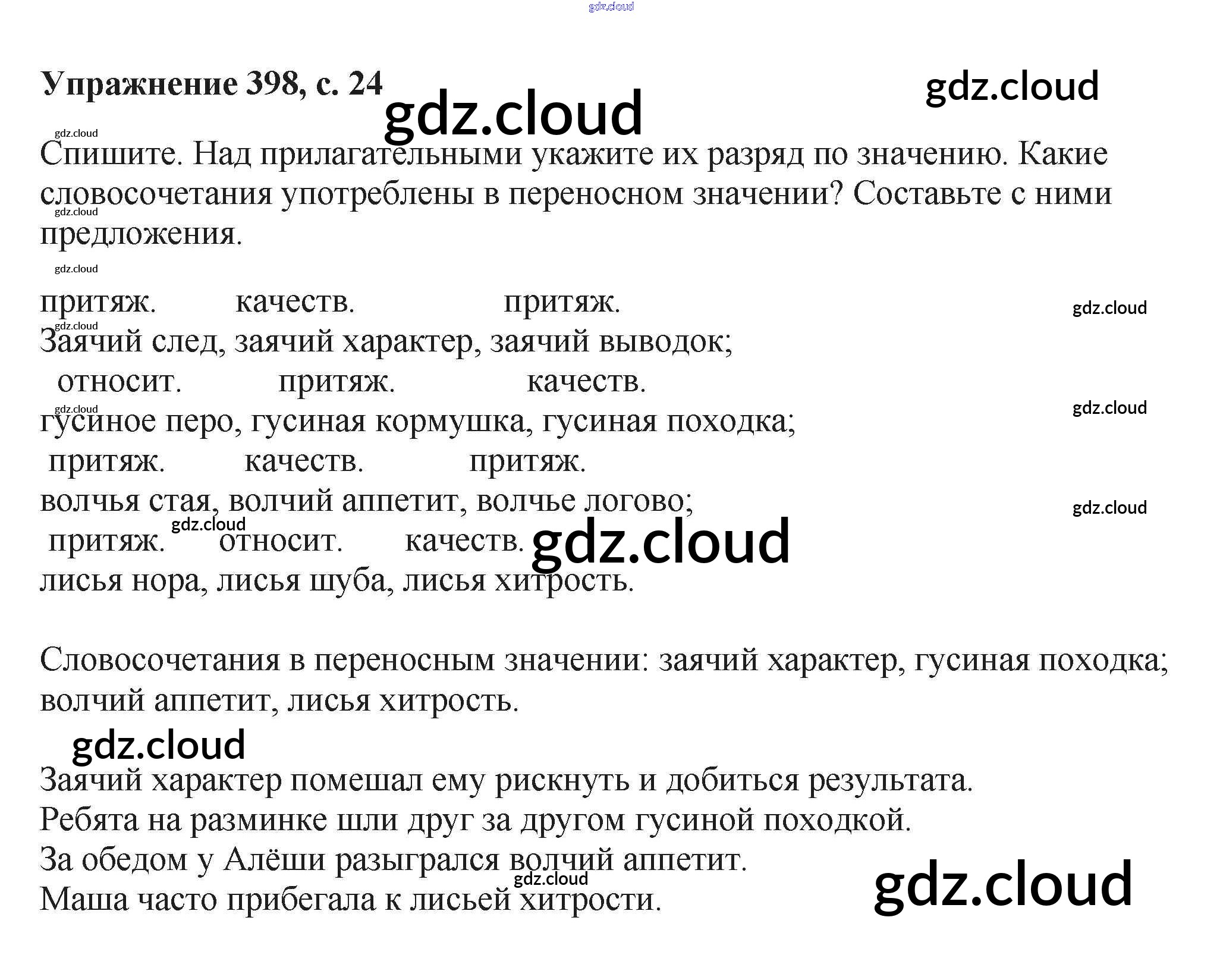 Ответ на задание 398 Учебник Русский язык за 6 (шестой) класс Баранов, Ладыженская, Тростенцова, Григорян, Кулибаба 2015, 2022 Часть 1, 2