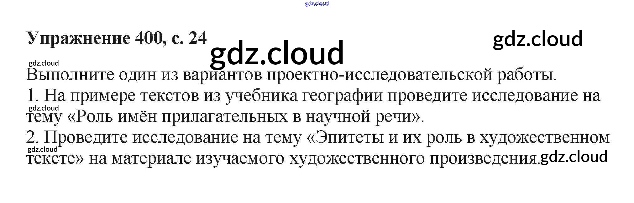 Ответ на задание 400 Учебник Русский язык за 6 (шестой) класс Баранов, Ладыженская, Тростенцова, Григорян, Кулибаба 2015, 2022 Часть 1, 2