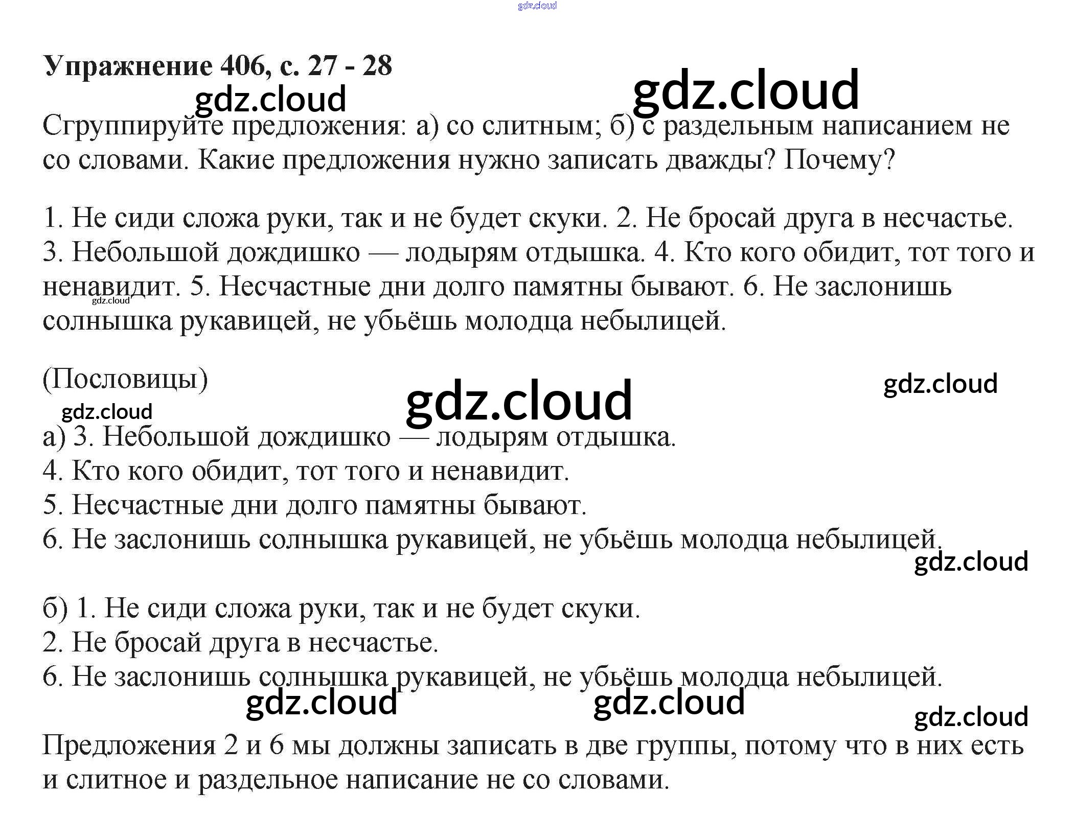 Ответ на задание 406 Учебник Русский язык за 6 (шестой) класс Баранов, Ладыженская, Тростенцова, Григорян, Кулибаба 2015, 2022 Часть 1, 2