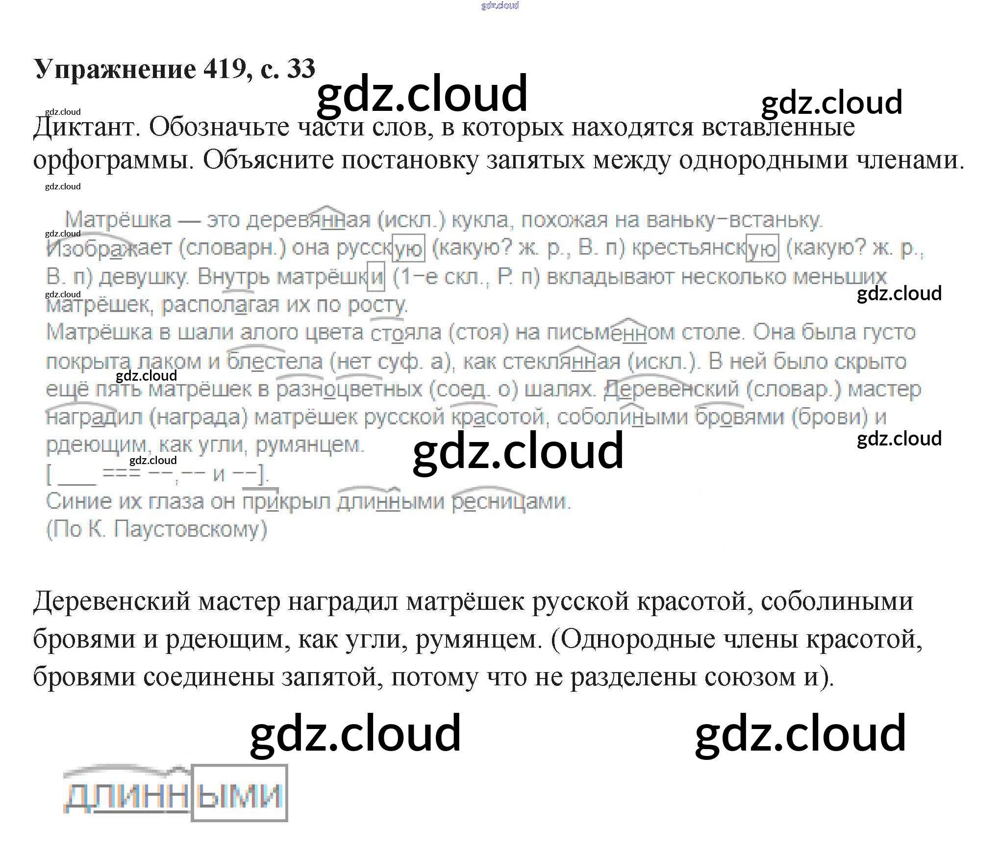 Ответ на задание 419 Учебник Русский язык за 6 (шестой) класс Баранов, Ладыженская, Тростенцова, Григорян, Кулибаба 2015, 2022 Часть 1, 2