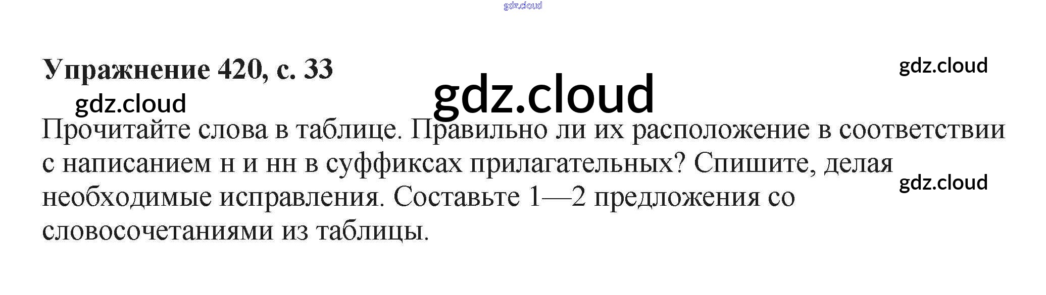 Ответ на задание 420 Учебник Русский язык за 6 (шестой) класс Баранов, Ладыженская, Тростенцова, Григорян, Кулибаба 2015, 2022 Часть 1, 2
