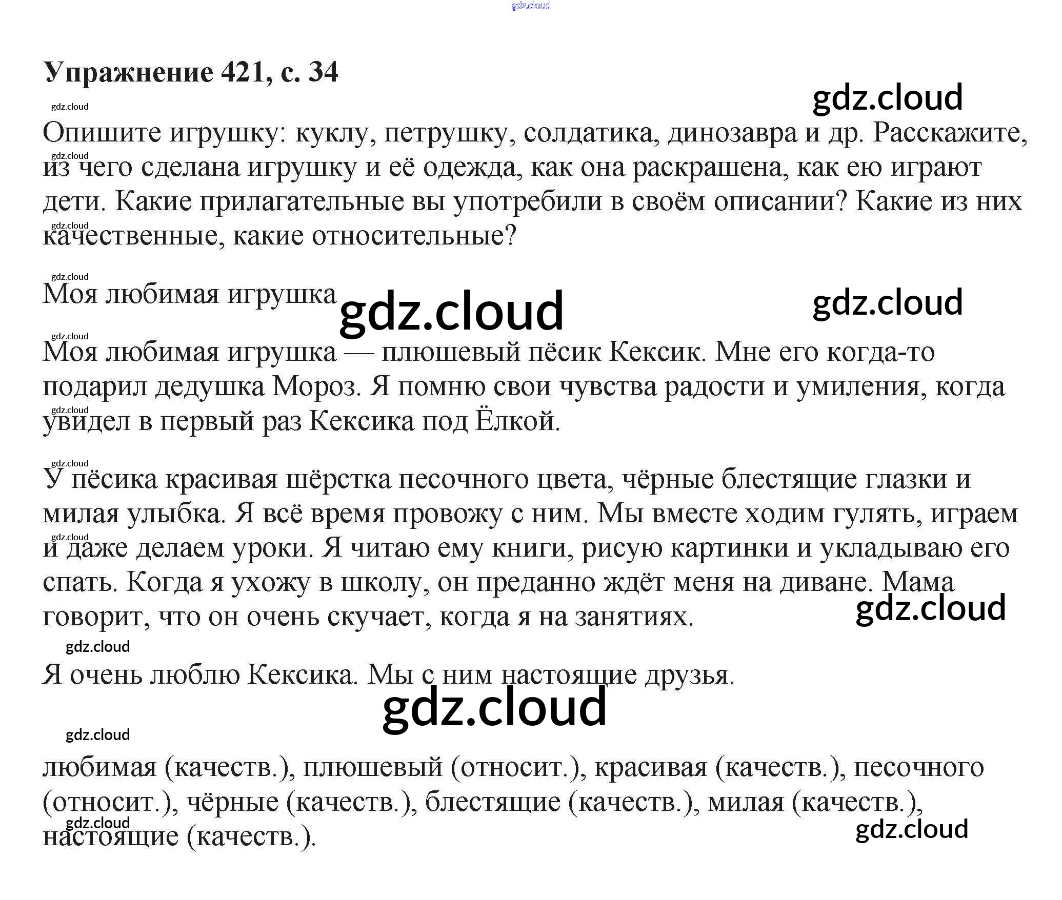 Ответ на задание 421 Учебник Русский язык за 6 (шестой) класс Баранов, Ладыженская, Тростенцова, Григорян, Кулибаба 2015, 2022 Часть 1, 2