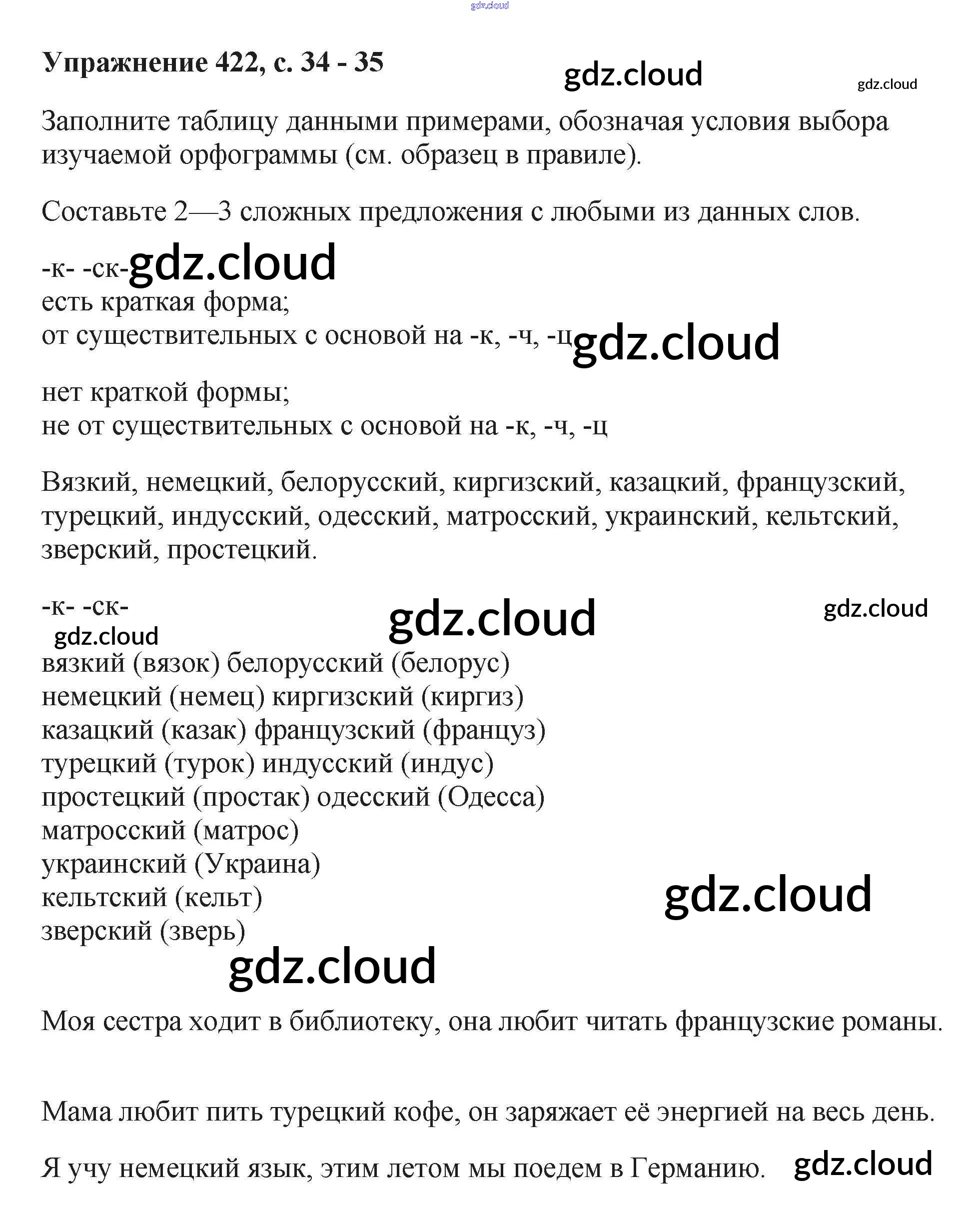 Ответ на задание 422 Учебник Русский язык за 6 (шестой) класс Баранов, Ладыженская, Тростенцова, Григорян, Кулибаба 2015, 2022 Часть 1, 2